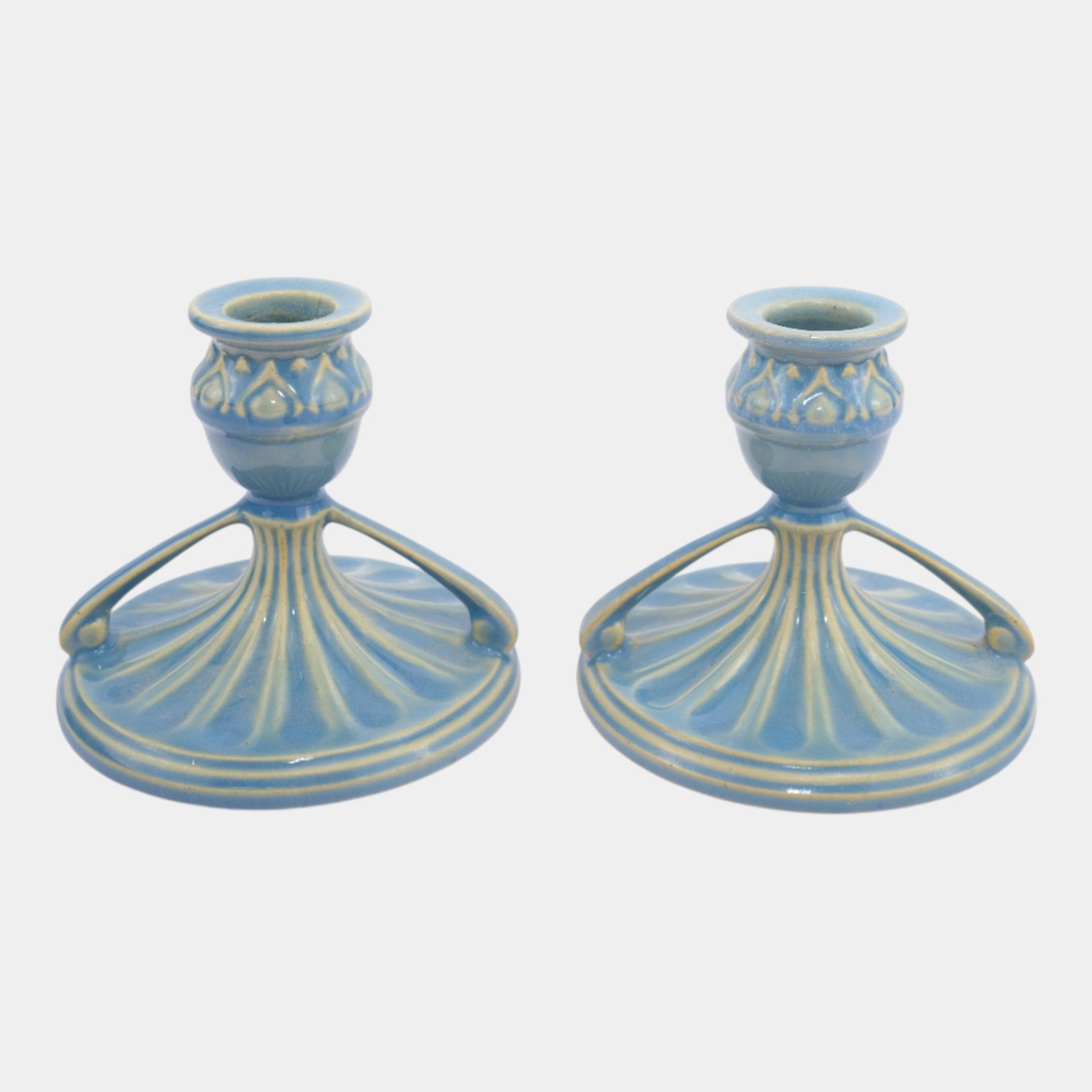 Roseville Savona Blue 1924 Vintage Art Deco Ceramic Candle Holders 1070-3