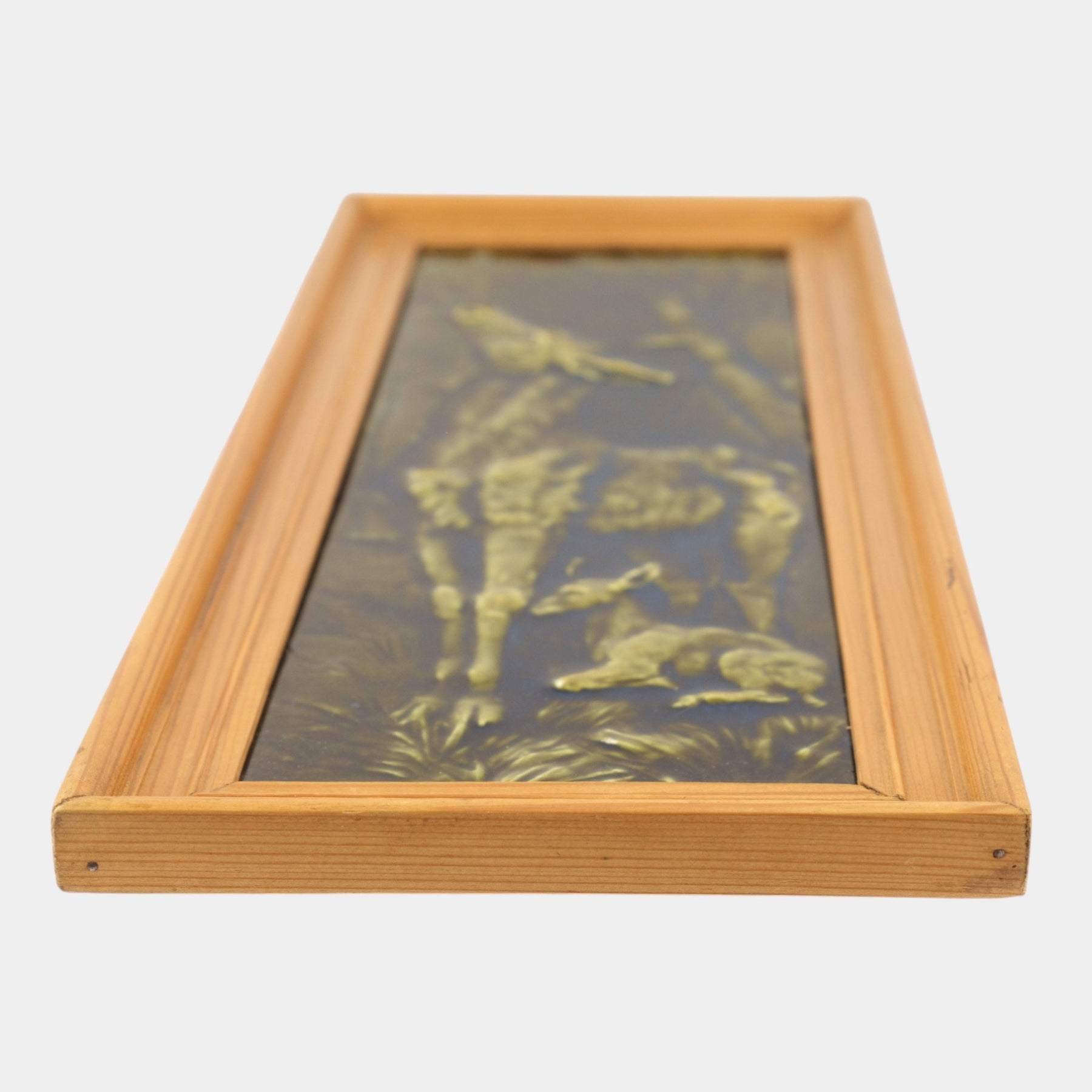 • Trent Tile Company 1880s Art Pottery Green Doe and Fawn Low Relief Framed Tile
