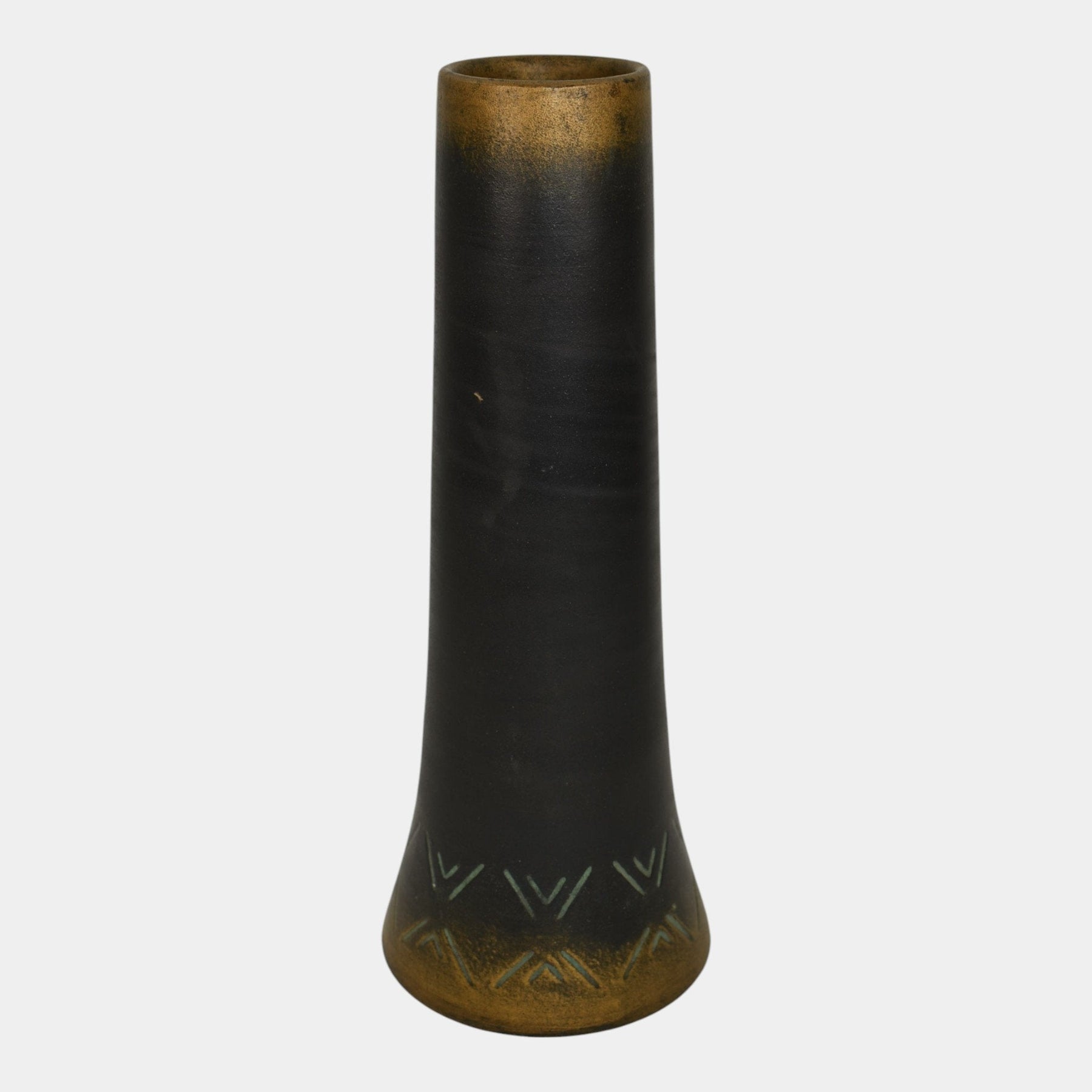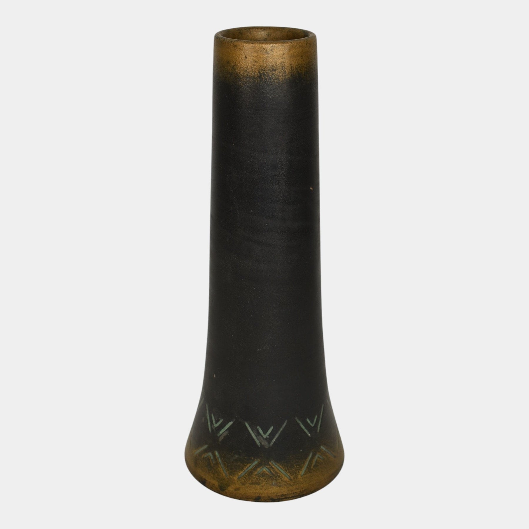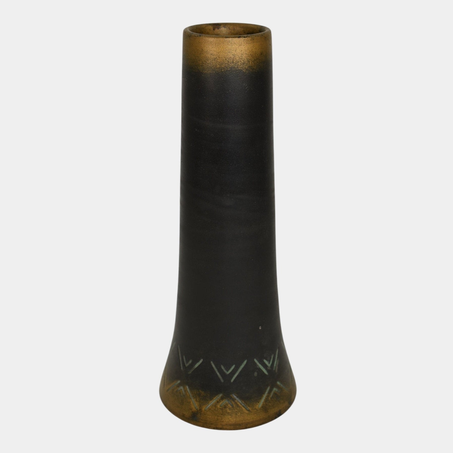 • Norse 1900s Vintage Art Pottery Bronze Ware Black Ceramic Incised Vase 43