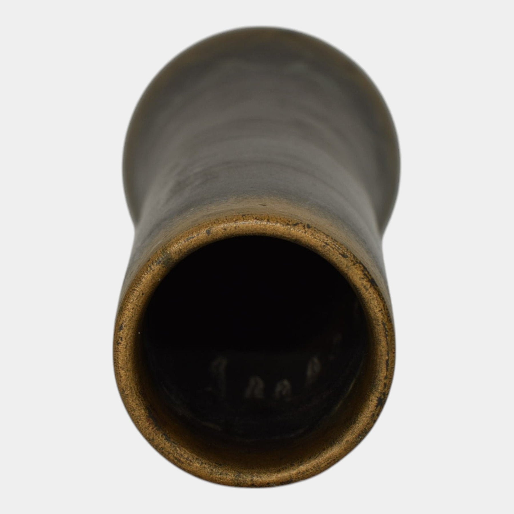 Norse 1900s Vintage Art Pottery Bronze Ware Black Ceramic Incised Vase 43