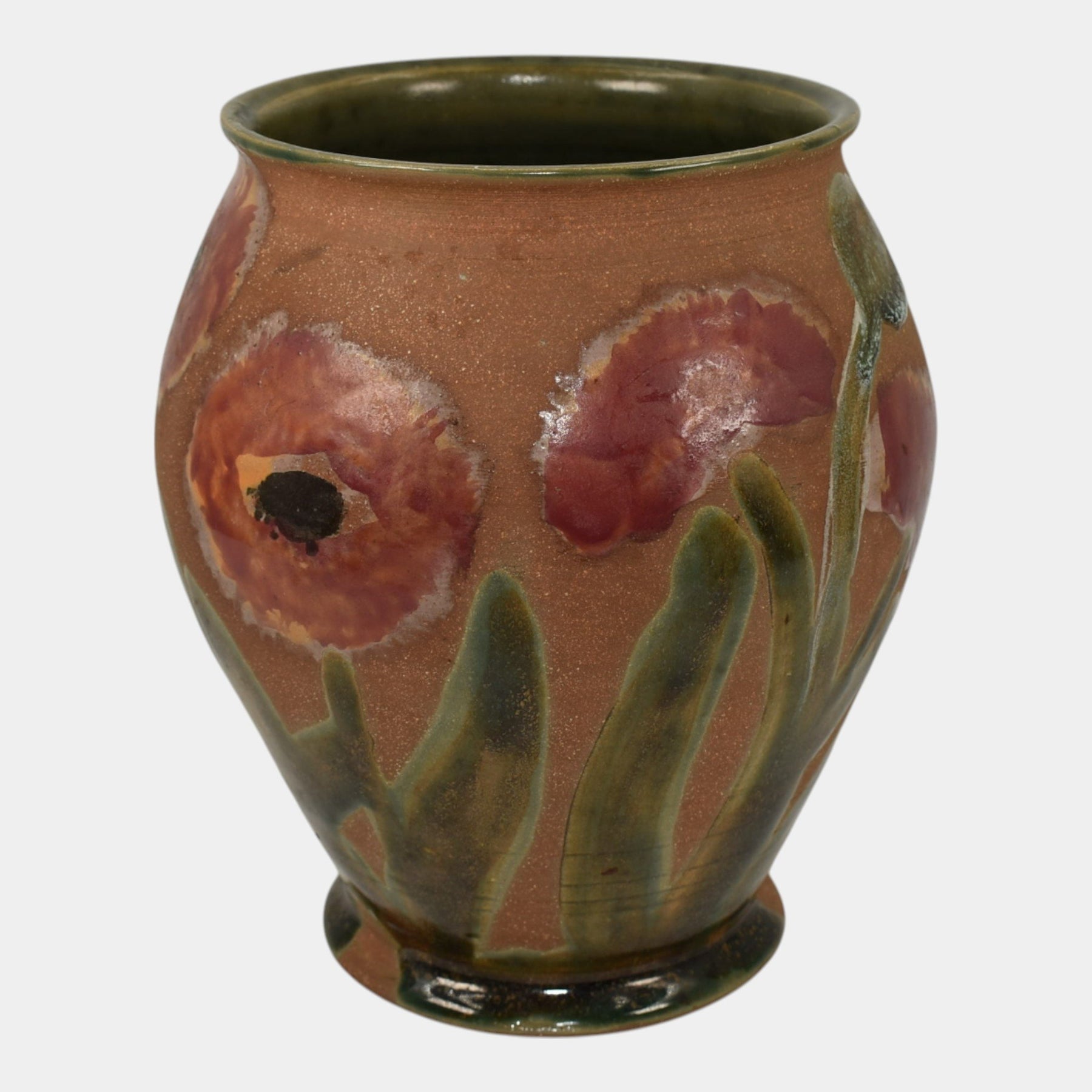 • Mark Sucharski Luna Star Van Briggle Pottery Hand Painted Poppy Vase