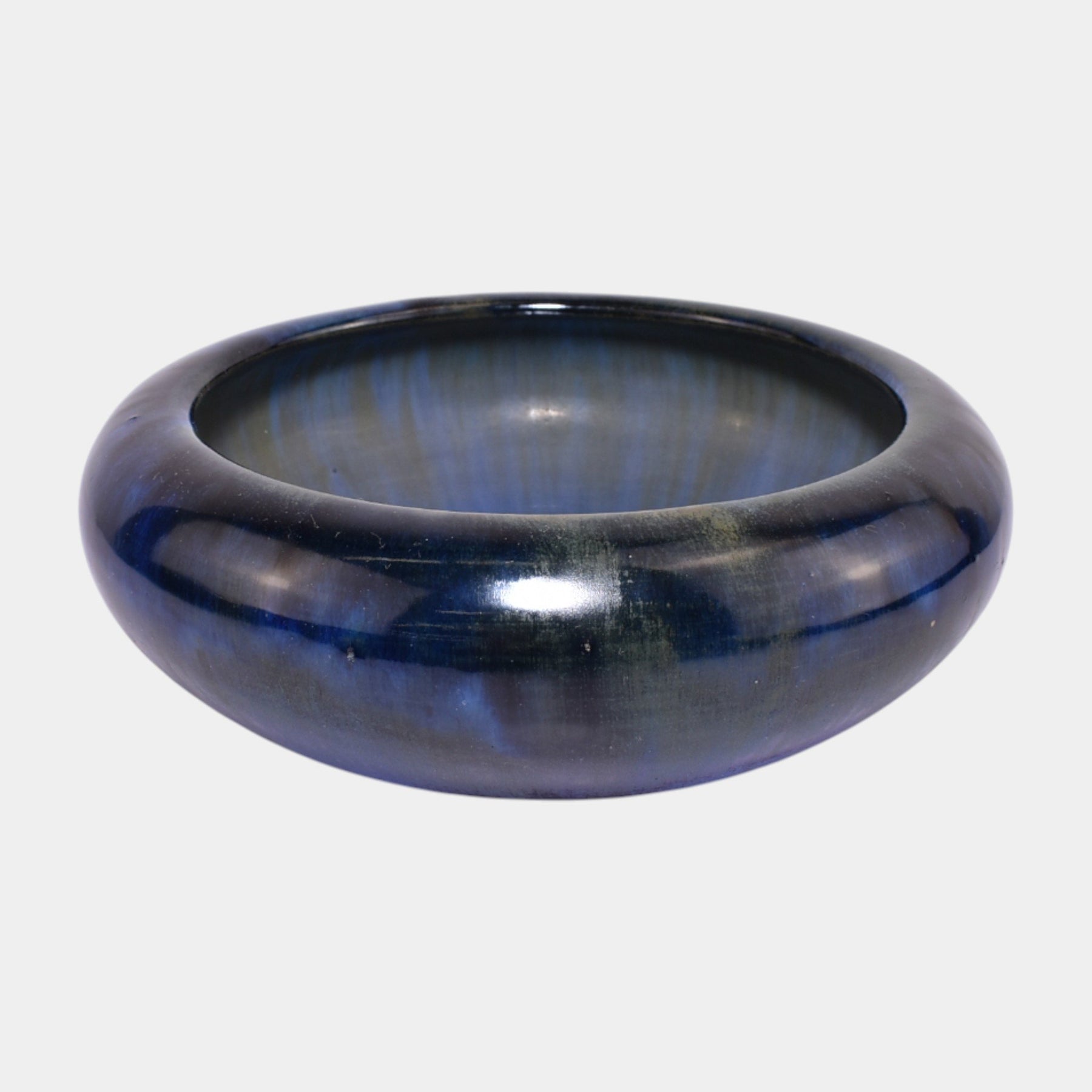 • Richly glazed low-form bowl in deep blue tones, showcasing Fulper’s signature mirror-like finish and smooth curvilinear form characteristic of their early 20th-century production.