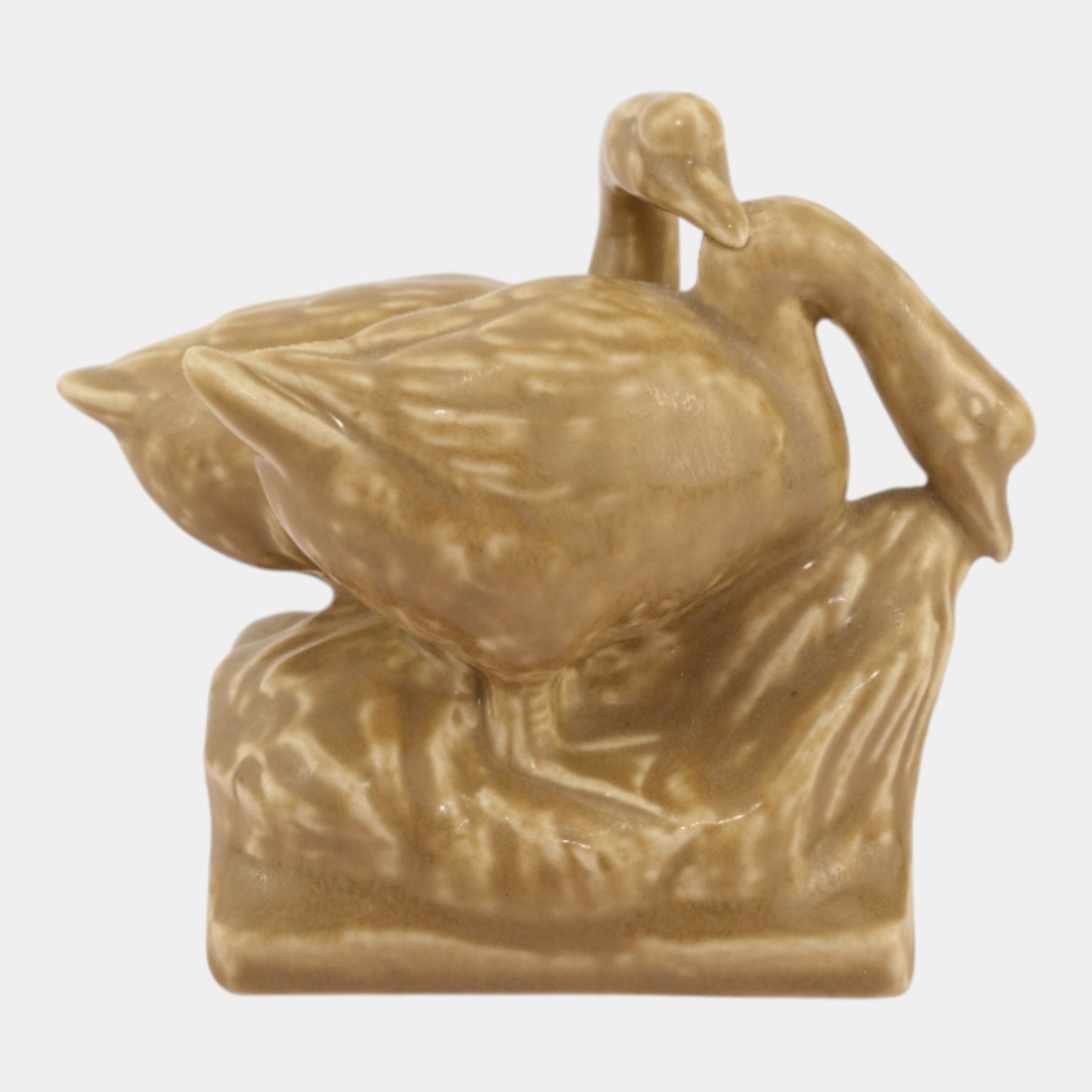 Rookwood 1928 Vintage Art Pottery Brown Two Geese Paperweight Figurine 1855