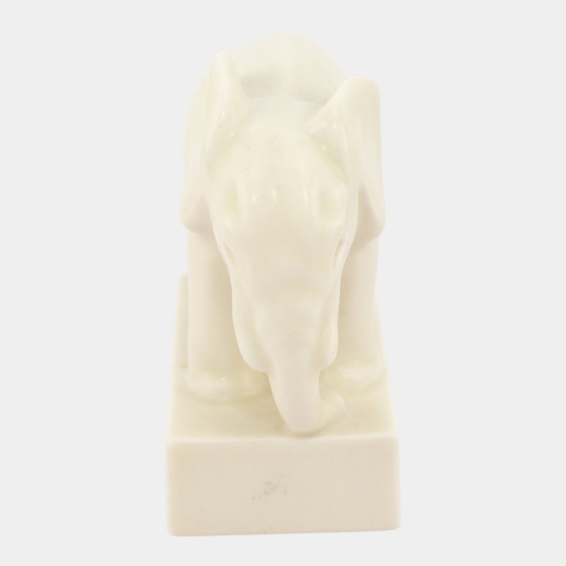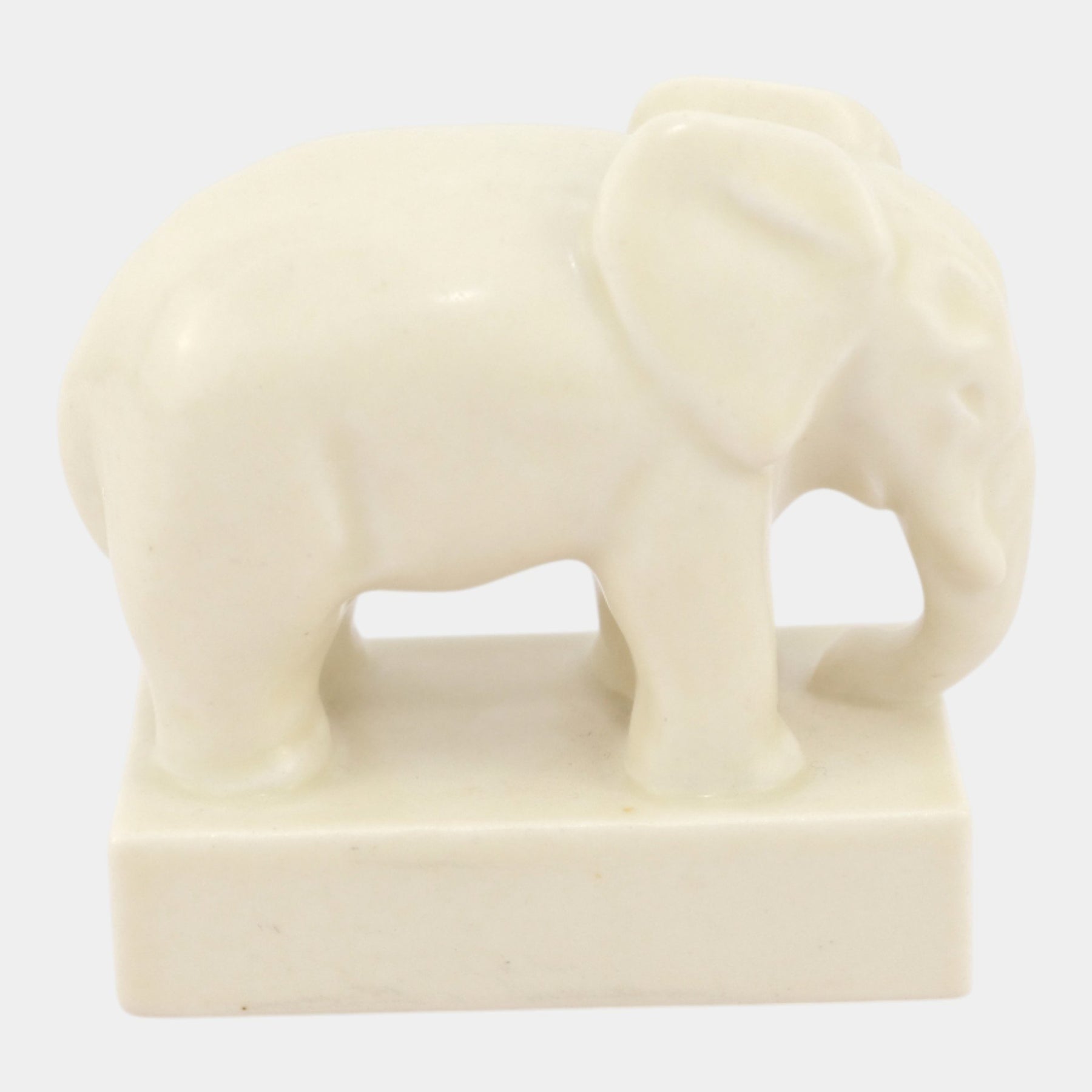 • Smoothly matte and serenely modeled, this elegant elephant figurine stands on a rectangular base, its soft ivory tones and gentle curves reflecting refined mid-century sculptural simplicity.