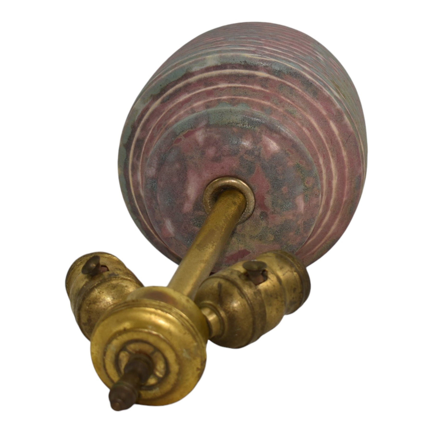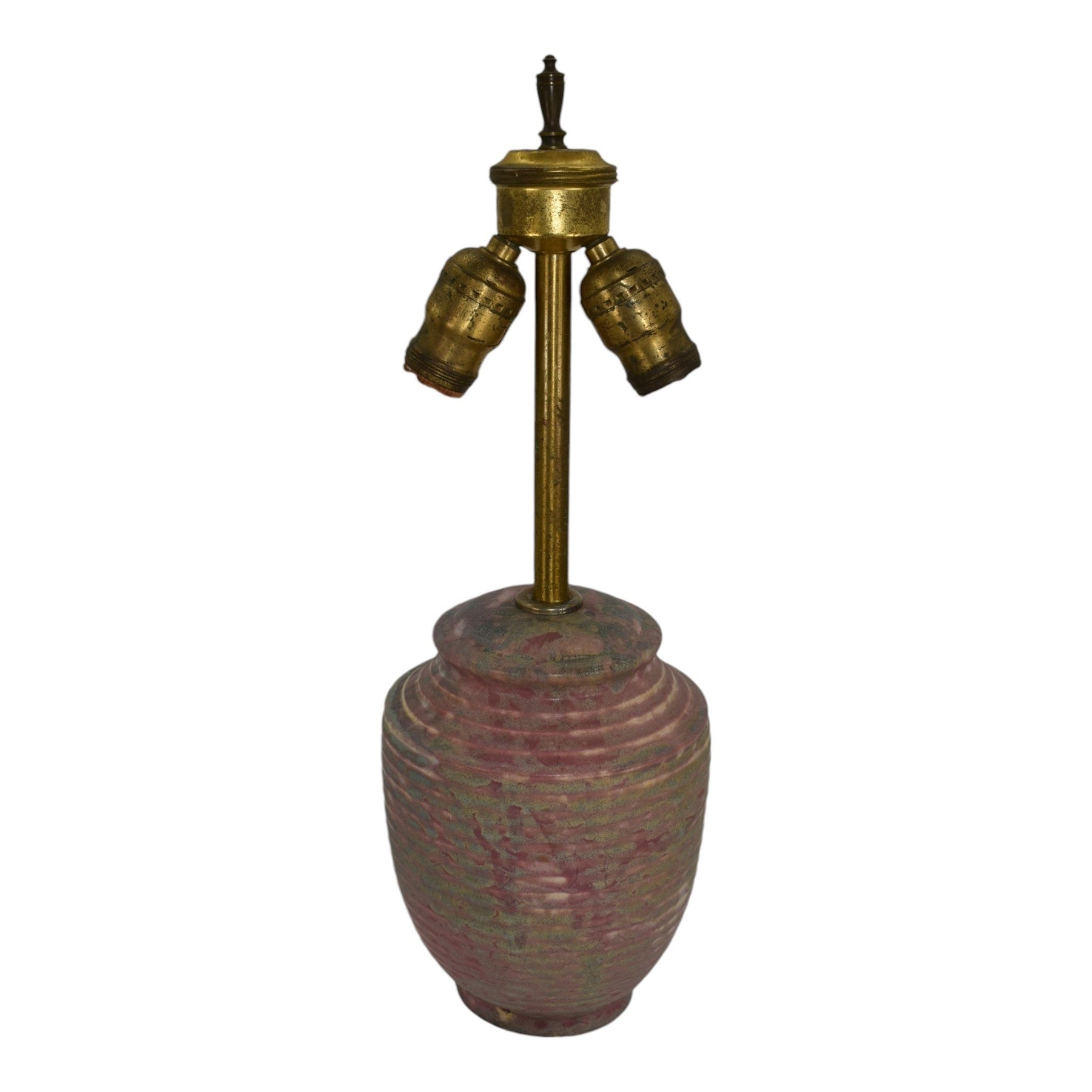• Burley Winter 1930s Vintage Art Deco Pottery Mottled Blue Over Red Ceramic Lamp