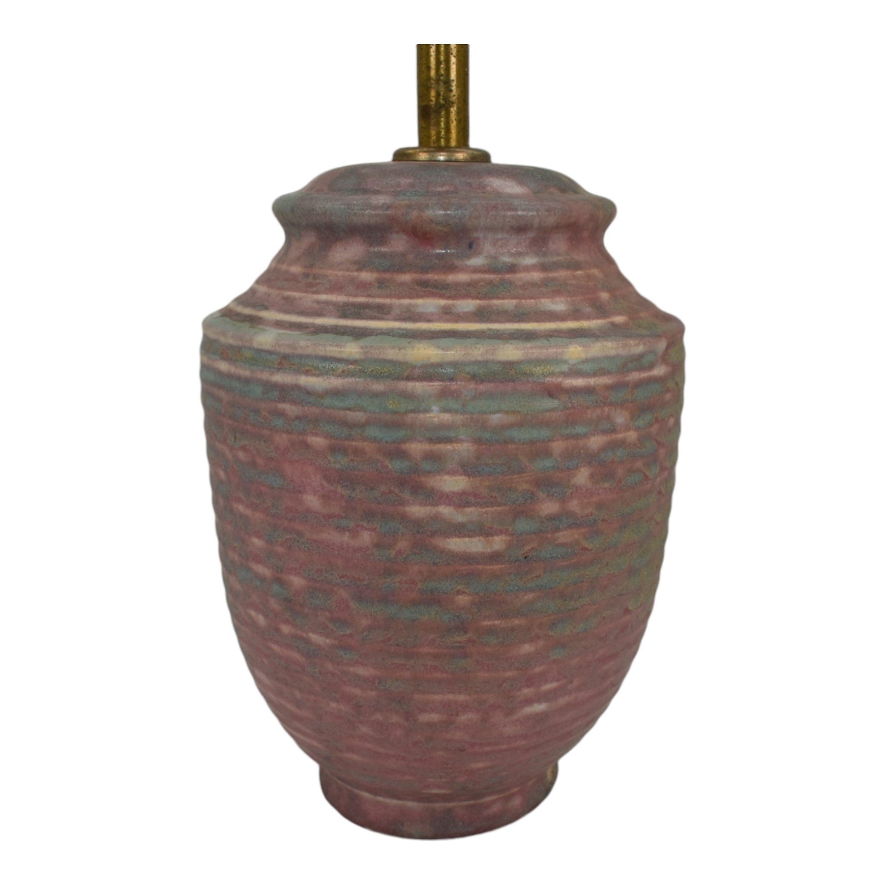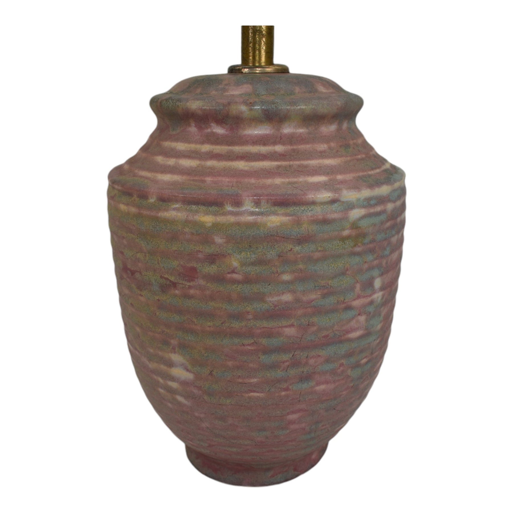 • Good sized, ribbed factory lamp with a nice mottled glaze.