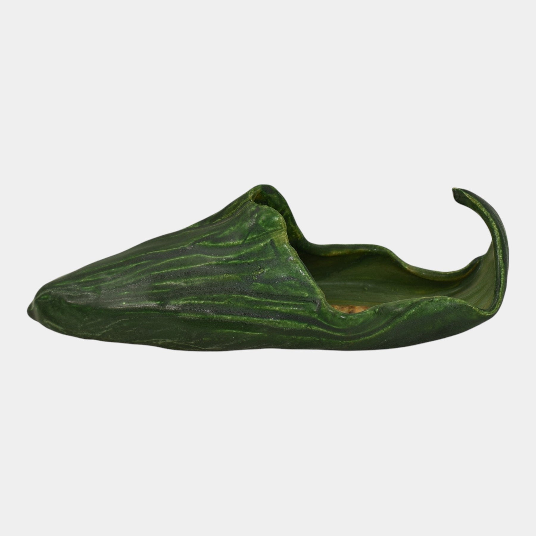 • Great one of a kind, non-production wall pocket with a cattail inside a bent over leaf by sought after pottery Jesse Wolf.