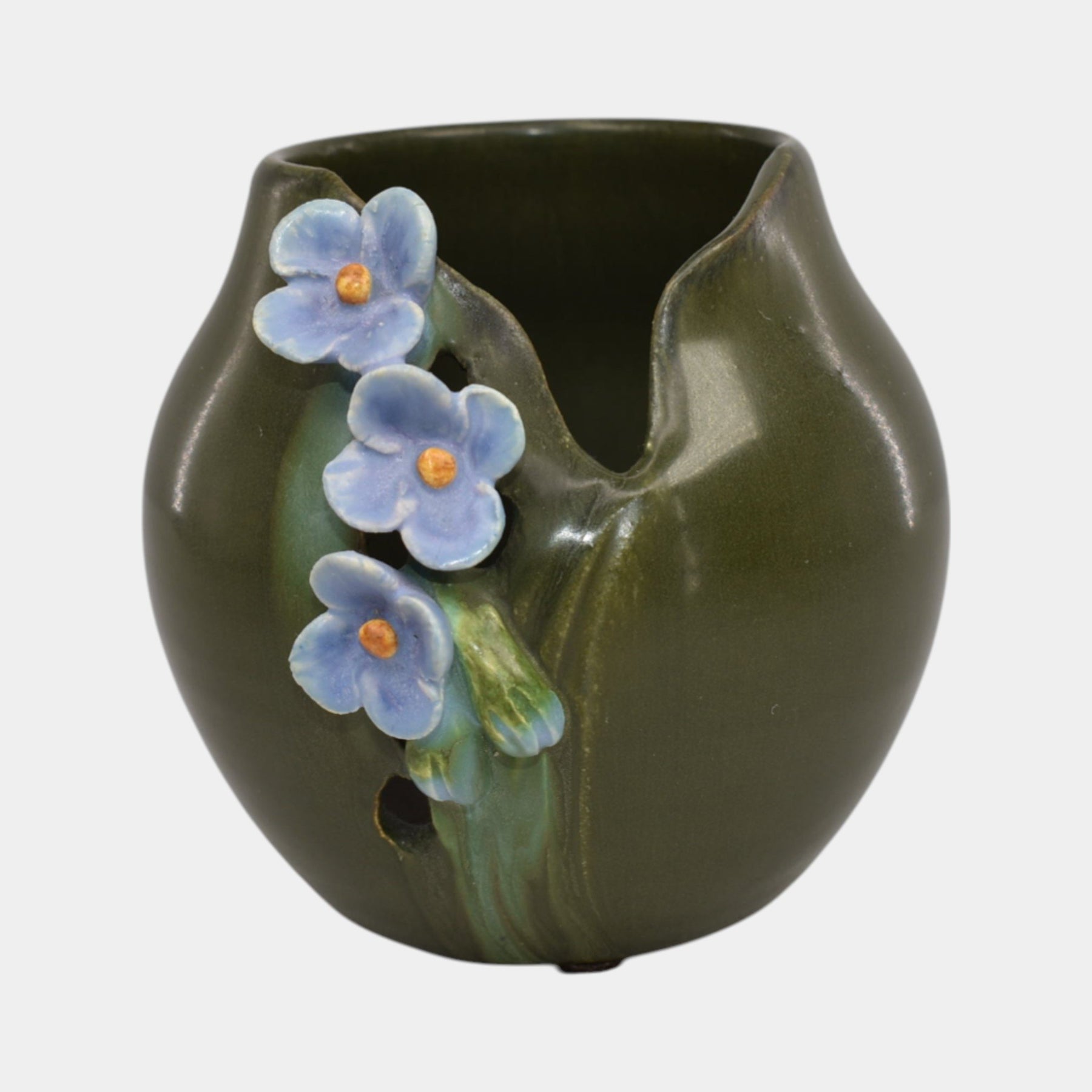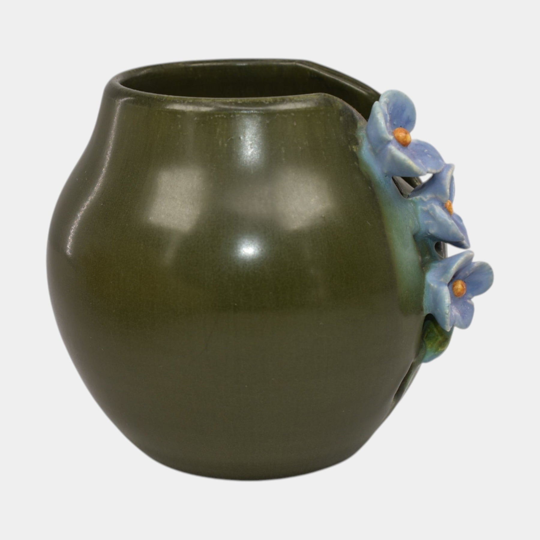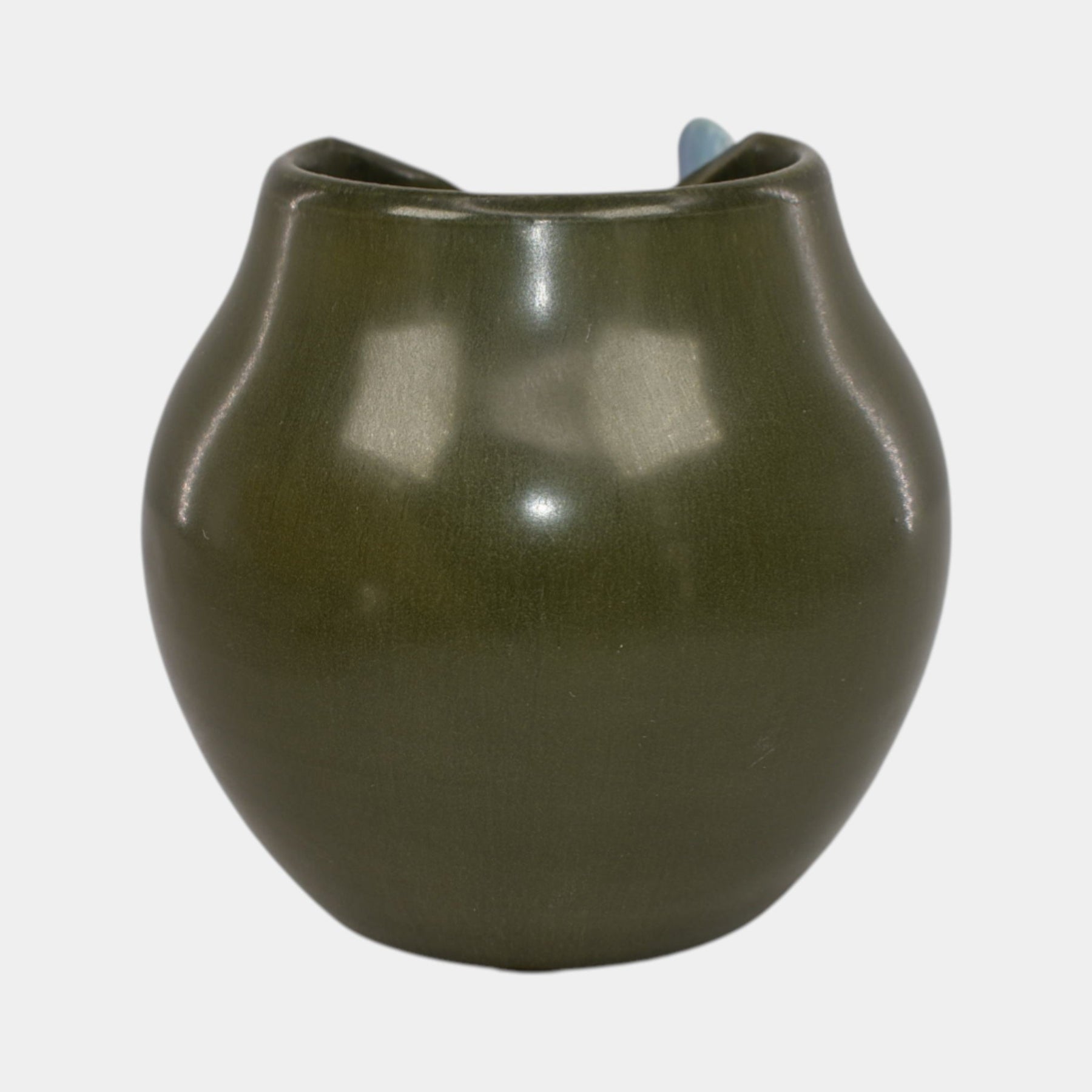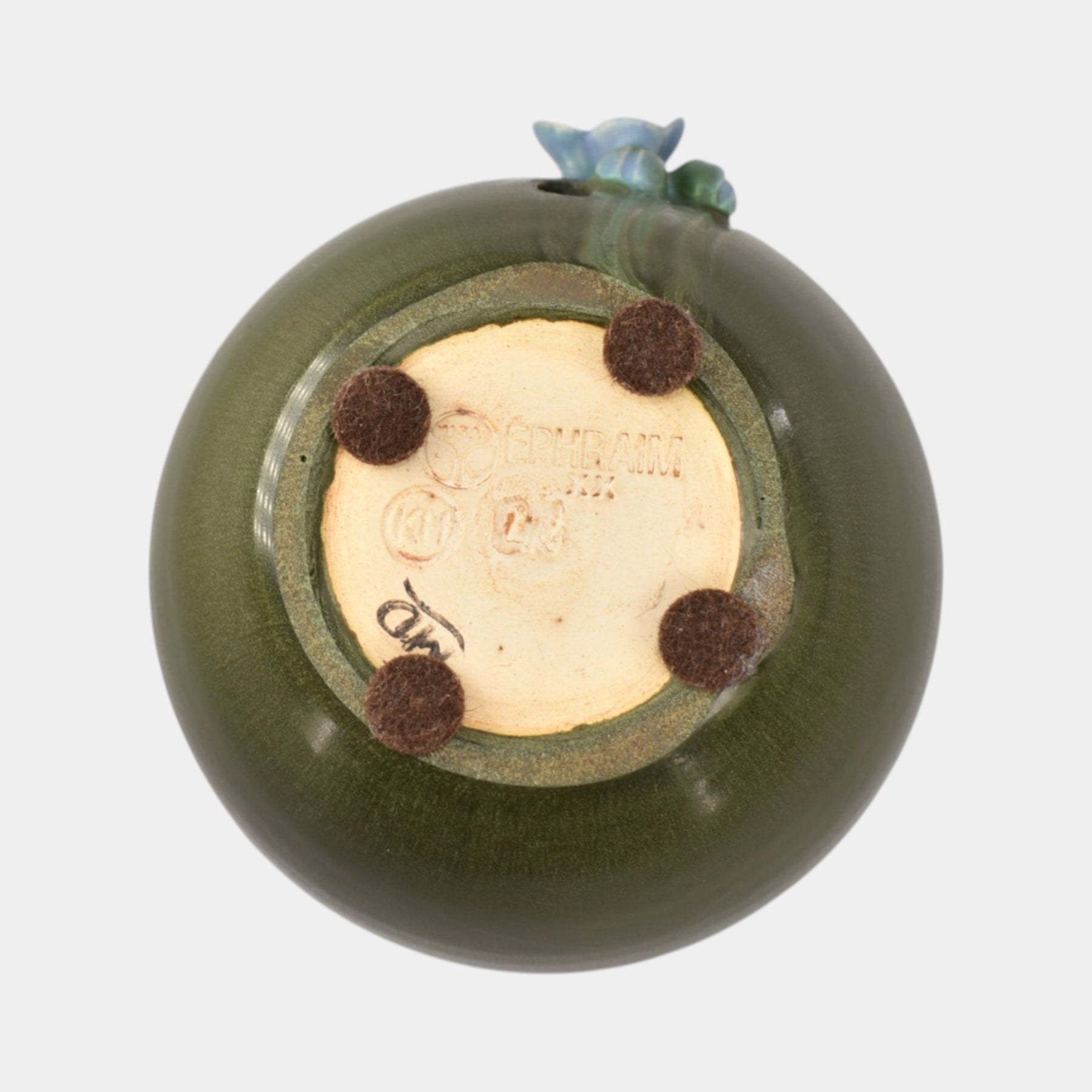 • This charming 2020 miniature vase by Ephraim Faience showcases a delicate wildflower motif in soft relief, accented by flowing stems and subtle glaze transitions. Its compact size and nature-inspired design reflect the studio's commitment to craftsmanship and botanical themes. A sweet and collectible example of modern Arts and Crafts revival pottery.