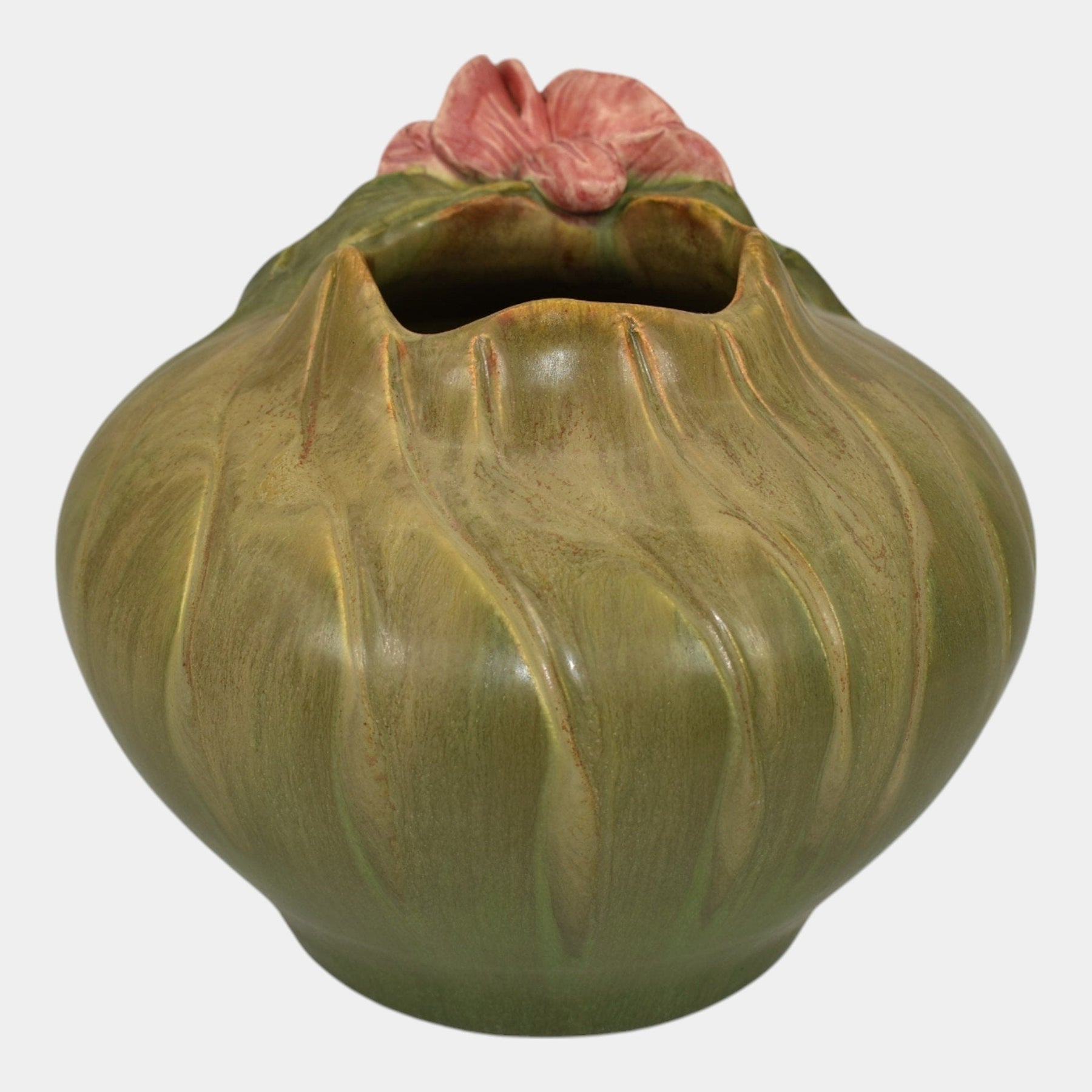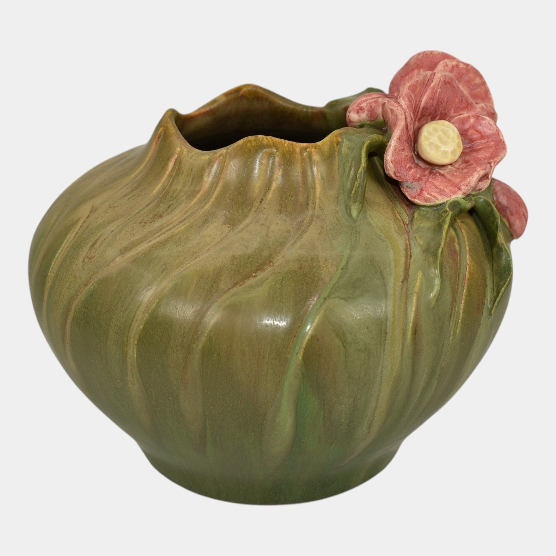 Ephraim Faience 2022 Hand Made Pottery Green Winter Rose Ceramic Bowl Q17