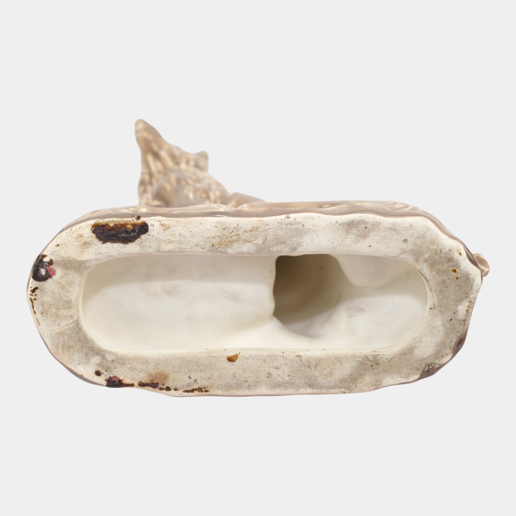 • Mosaic Tile Company black ceramic dog figurine, finely detailed with textured fur and natural stance. A bold piece showcasing the company's craftsmanship and artistry in early American ceramics.