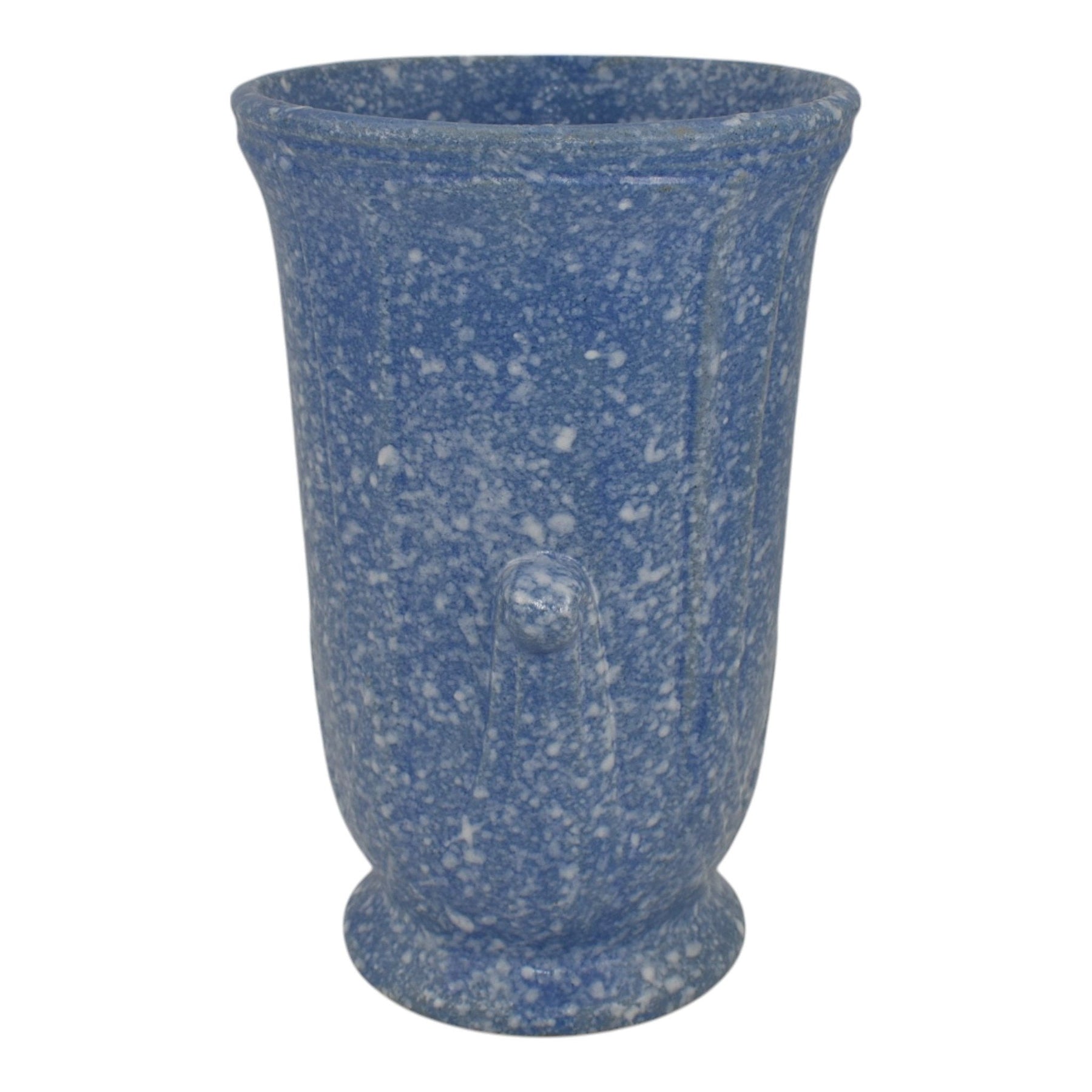 • Robinson Ransbottom 1930s Vintage Ohio Pottery Blue Mottled Ceramic Vase 127