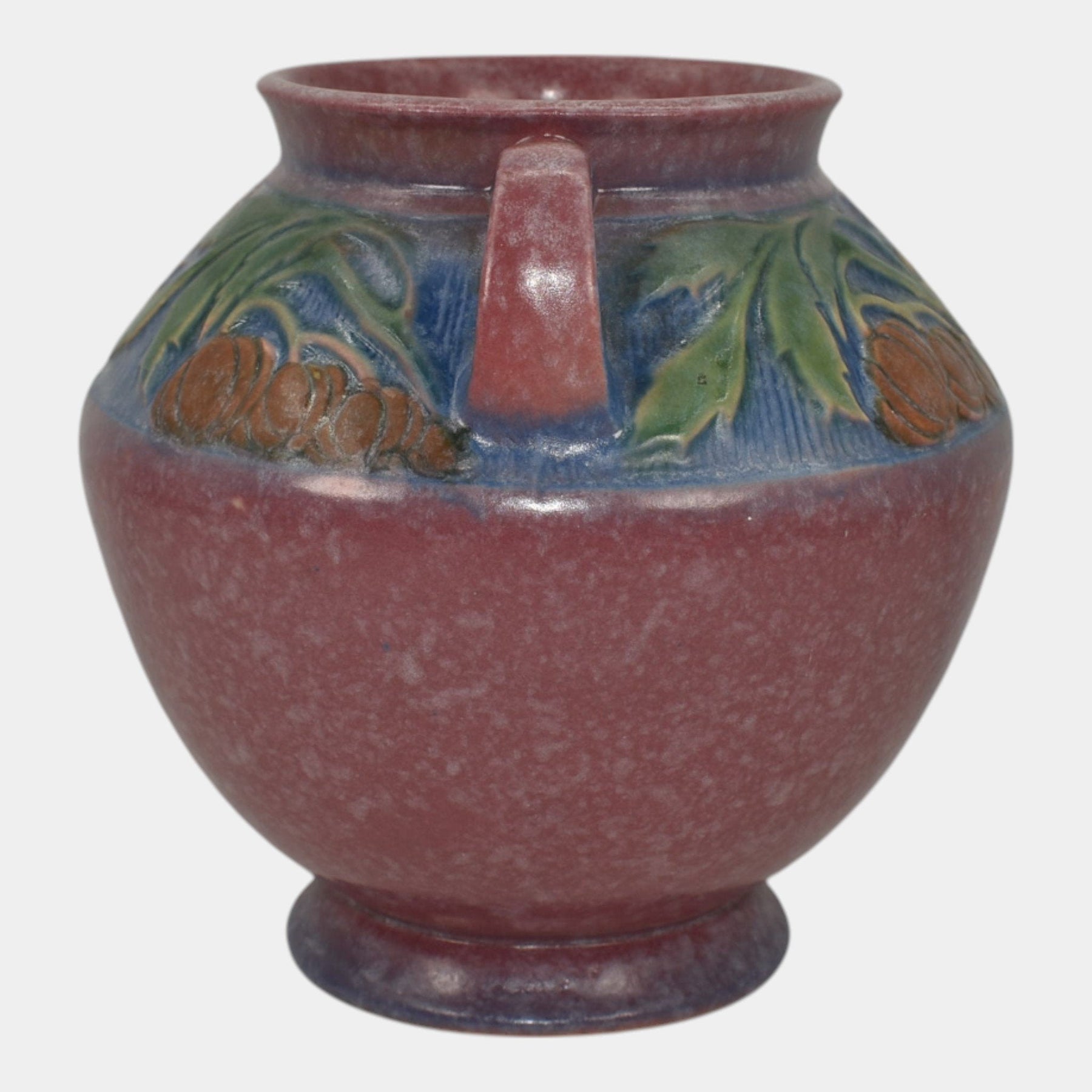 • Roseville Pottery was established in Roseville, Ohio, in 1890. Over the years, the company expanded its production to include a wide range of decorative wares, and by the early 20th century, Roseville had shifted its focus toward producing finely crafted art pottery in response to the growing Arts and Crafts movement. Many popular patterns and styles helped establish Roseville as a leading American art pottery maker, known for its high-quality craftsmanship and distinctive, nature-inspired designs.