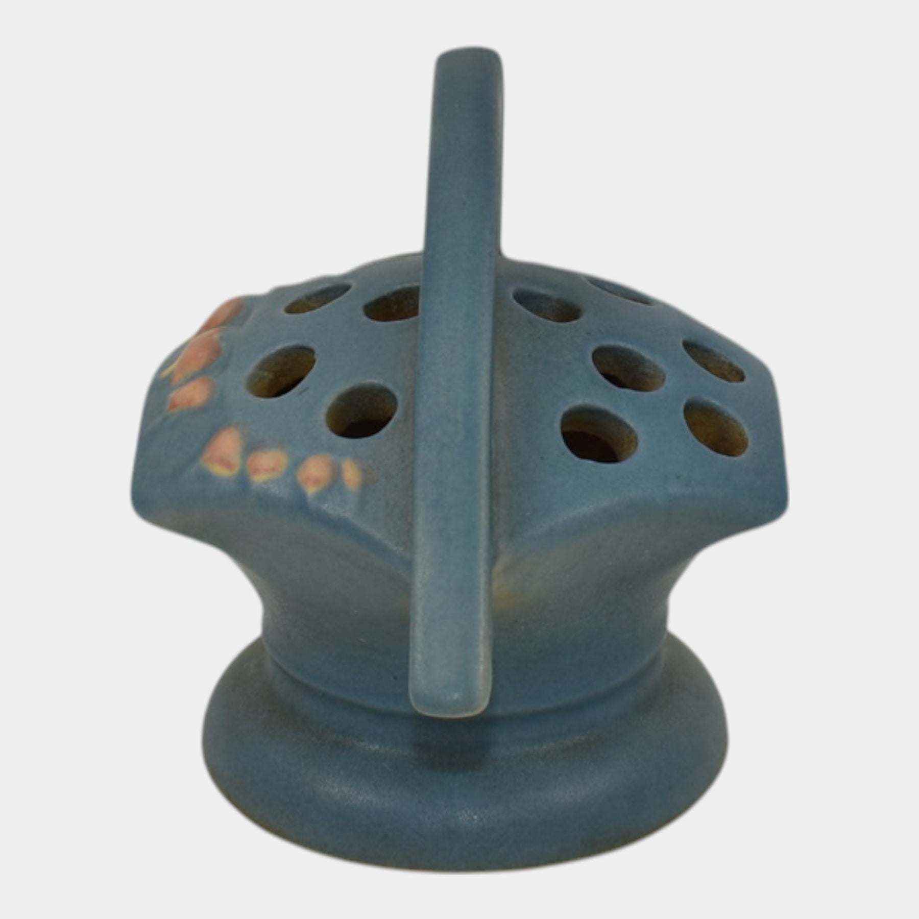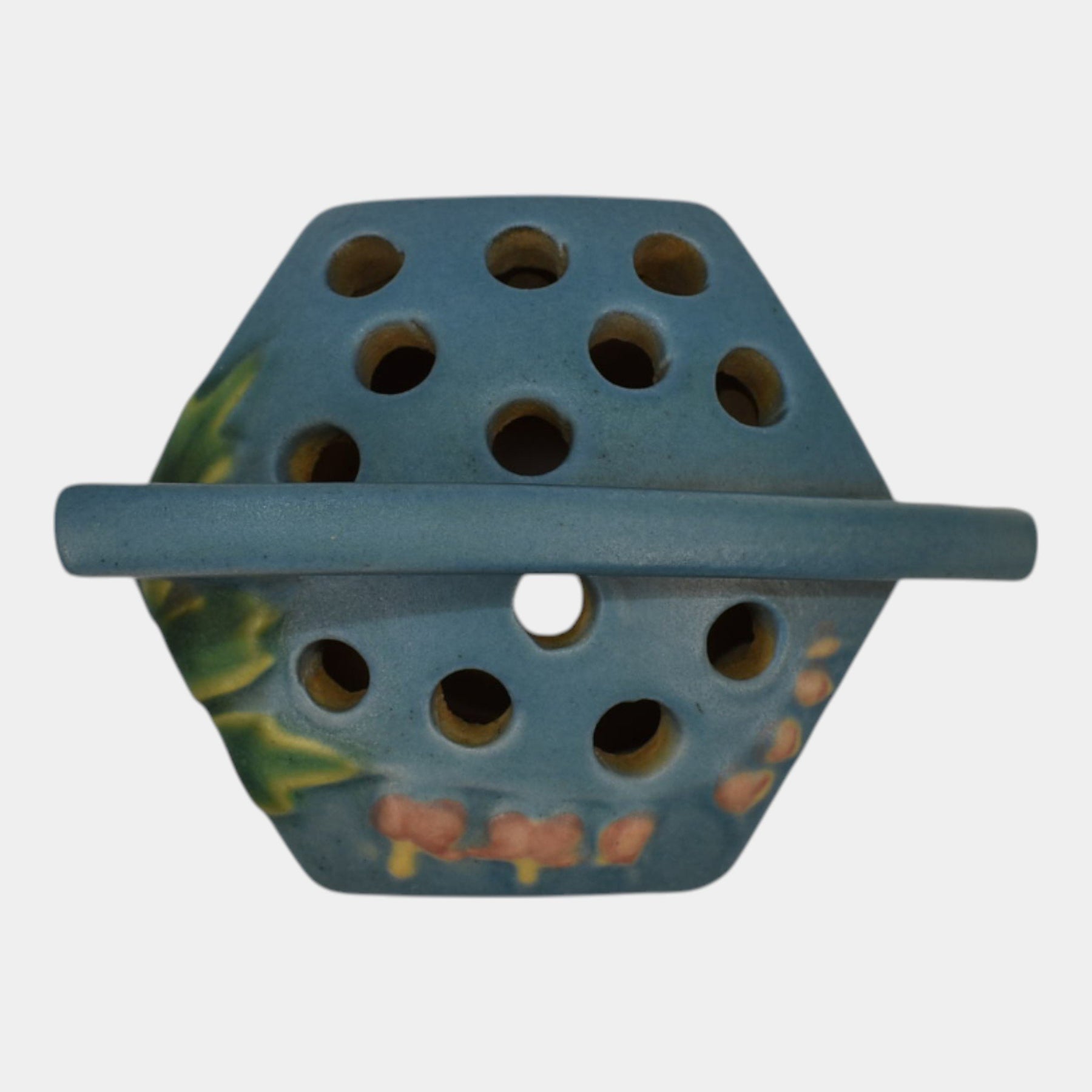 Roseville Bleeding Heart Blue 1940 Vintage Art Pottery Ceramic Flower Frog 40