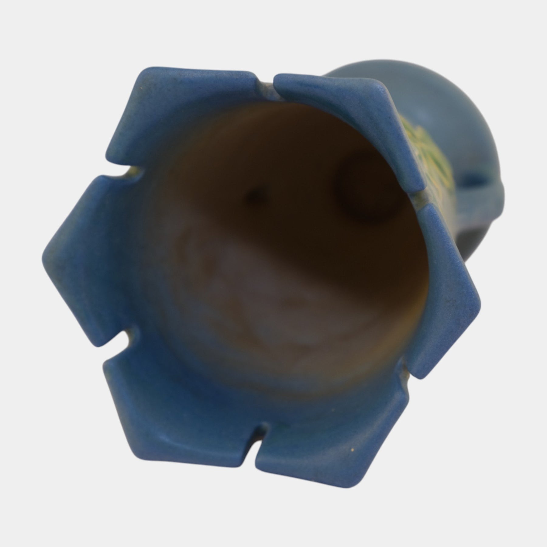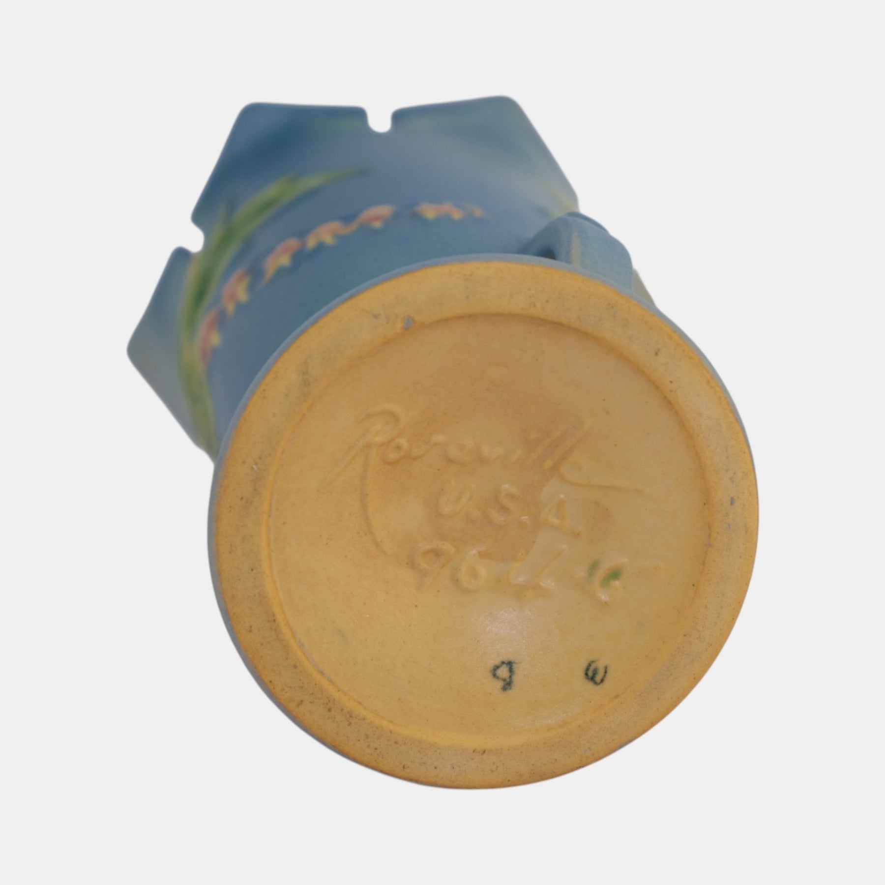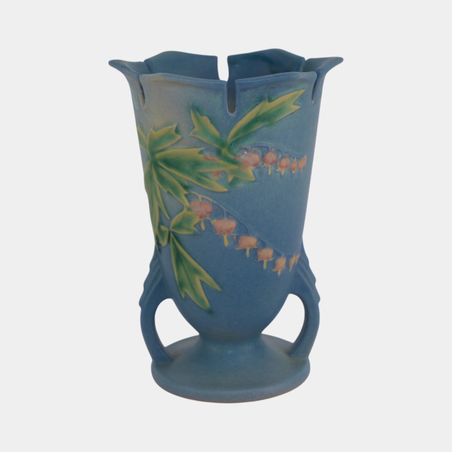 • Roseville Bleeding Heart Blue 1940 Vintage Art Pottery Ceramic Vase 964-6