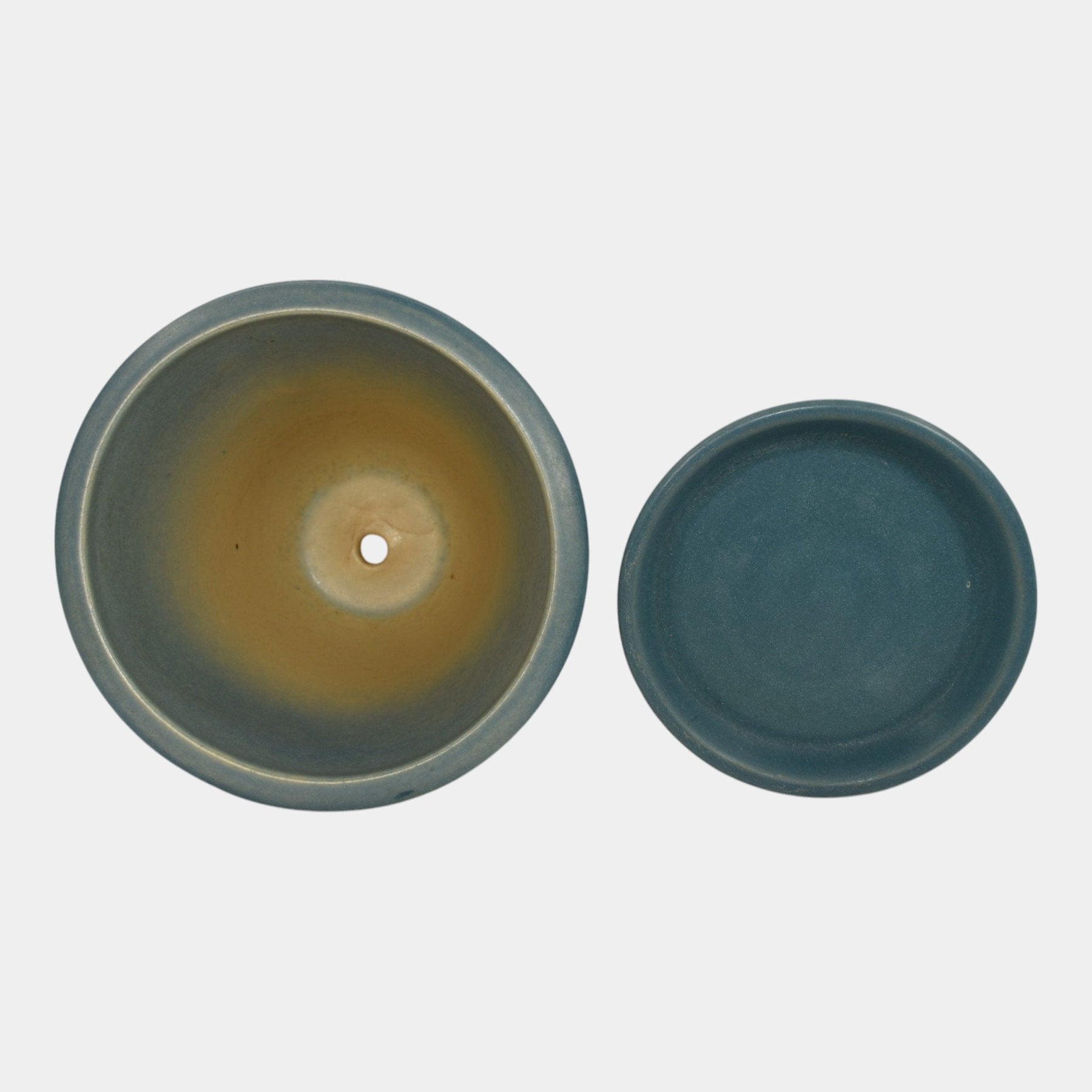 • Decorative flower pot and saucer with excellent mold in sought after blue.
