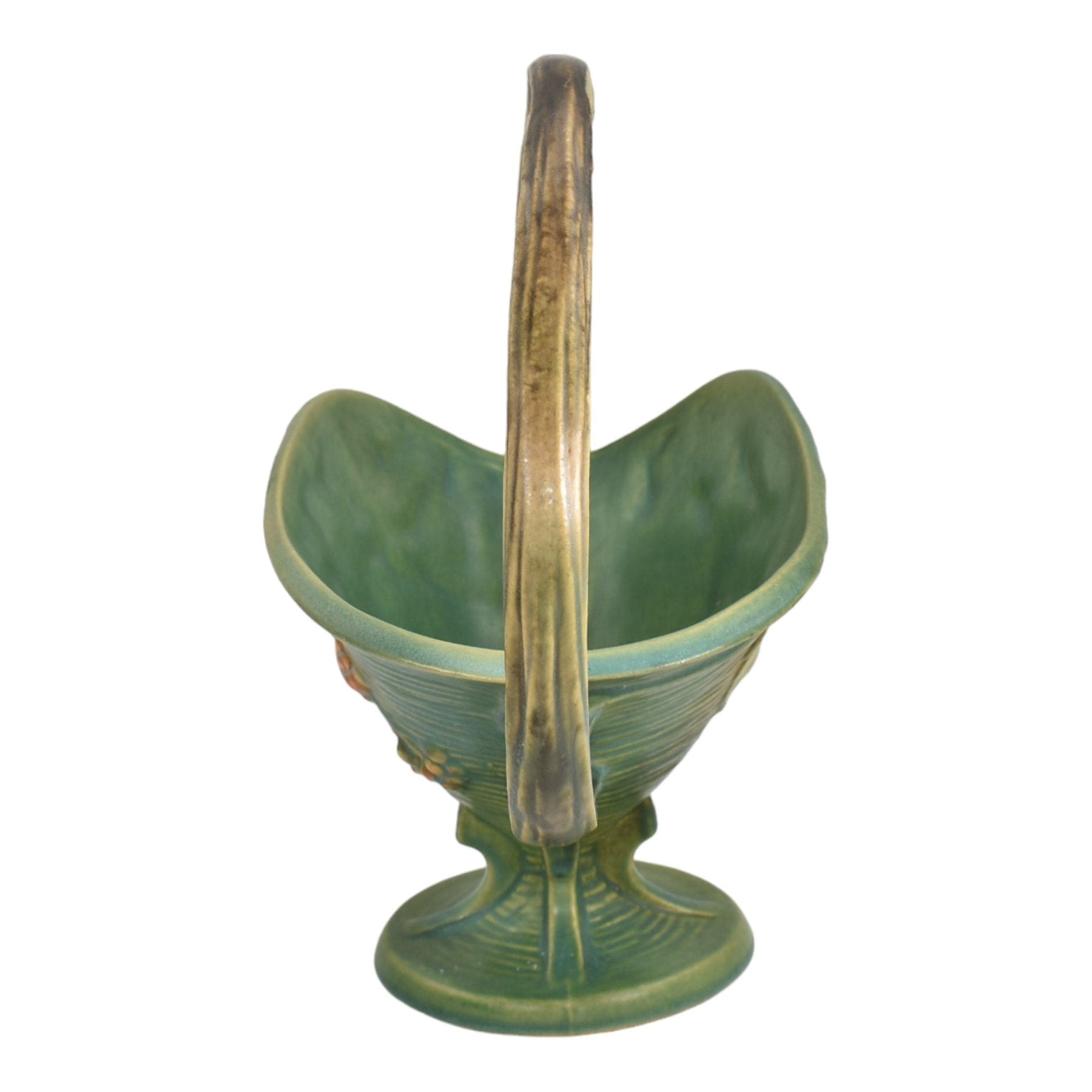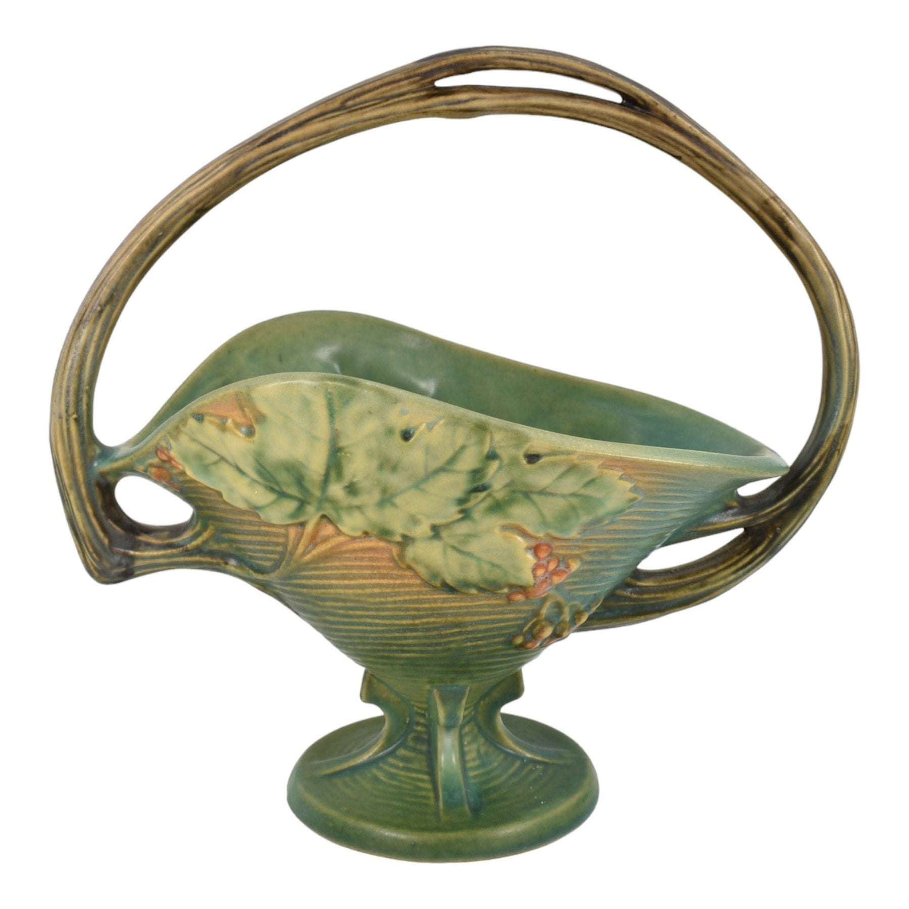 Roseville Bushberry Green 1941 Mid Century Modern Pottery Ceramic Basket 372-12