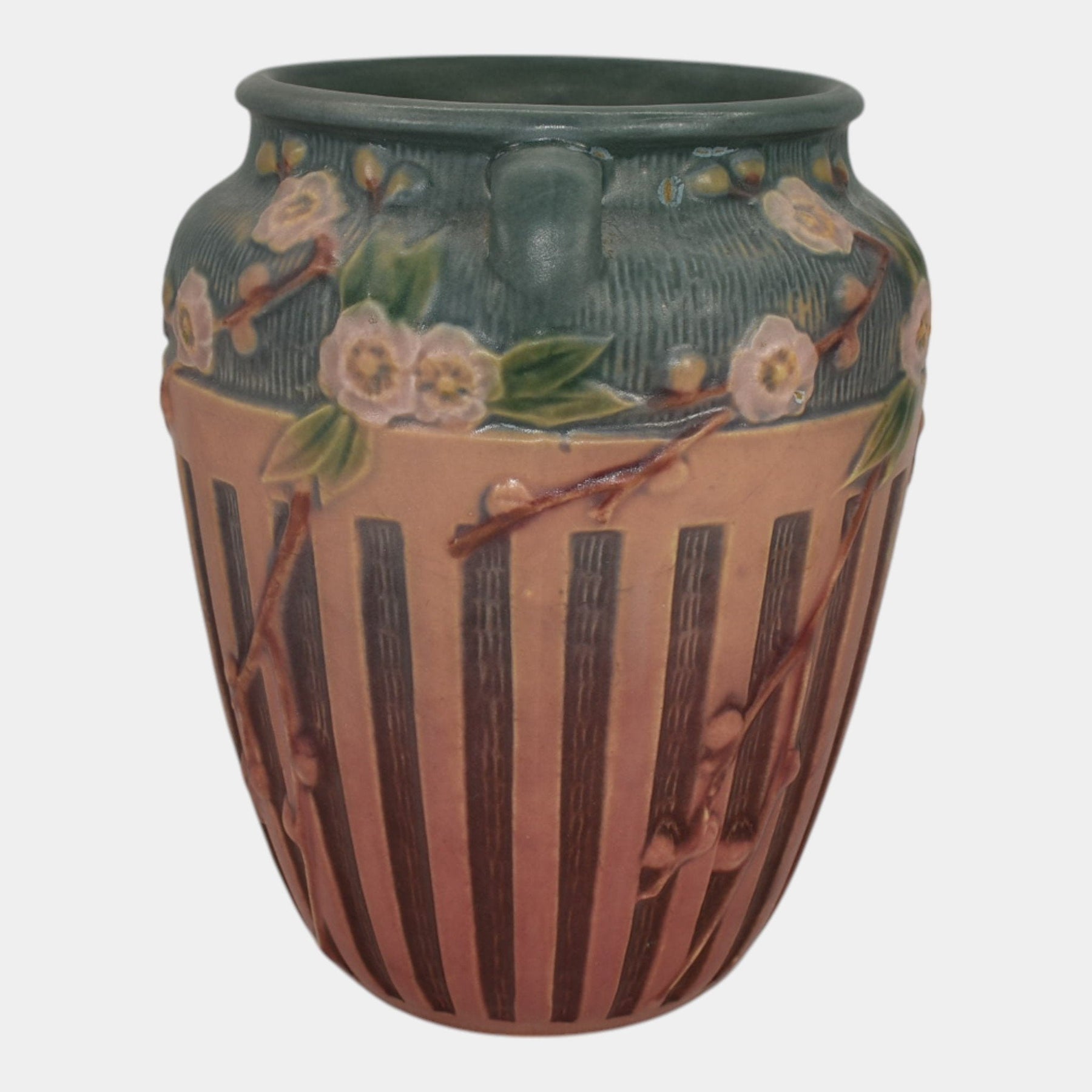 • Roseville Cherry Blossom Pink 1933 Vintage Art Deco Pottery Ceramic Vase 623-7