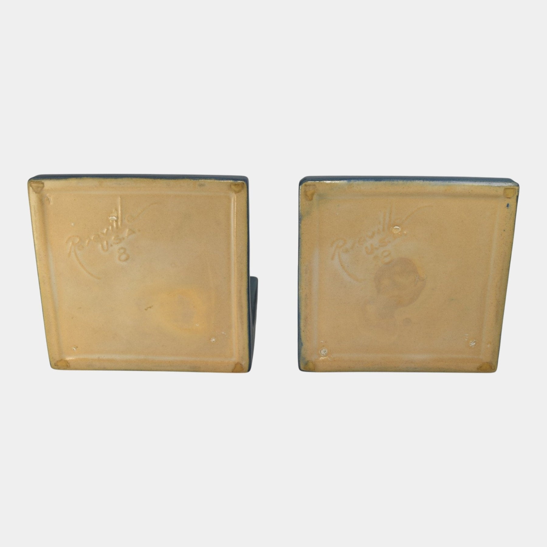 Roseville Columbine Blue 1941 Vintage Art Pottery Planter Bookends 8