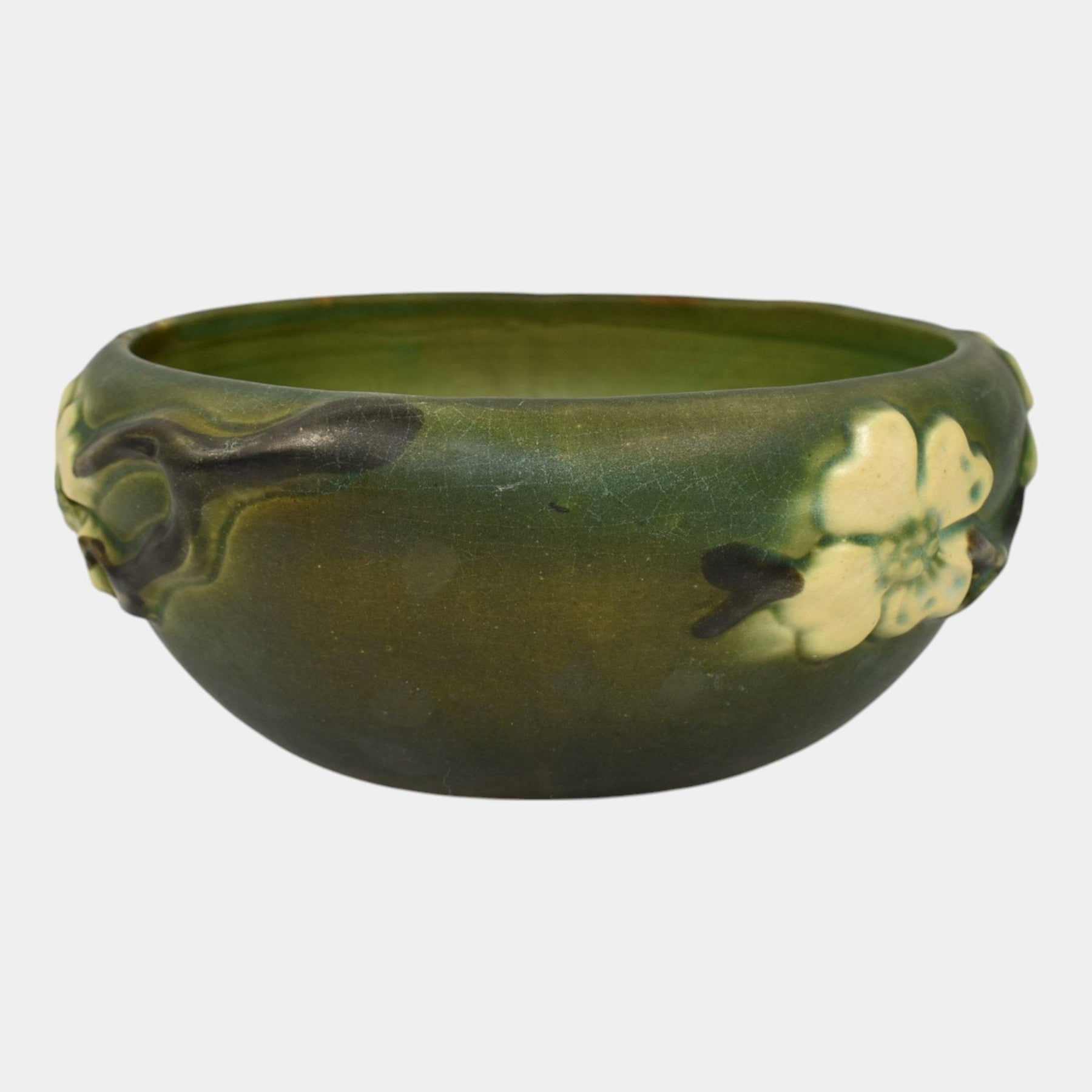 Roseville Dogwood Green Smooth 1920 Vintage Art Deco Pottery Ceramic Bowl