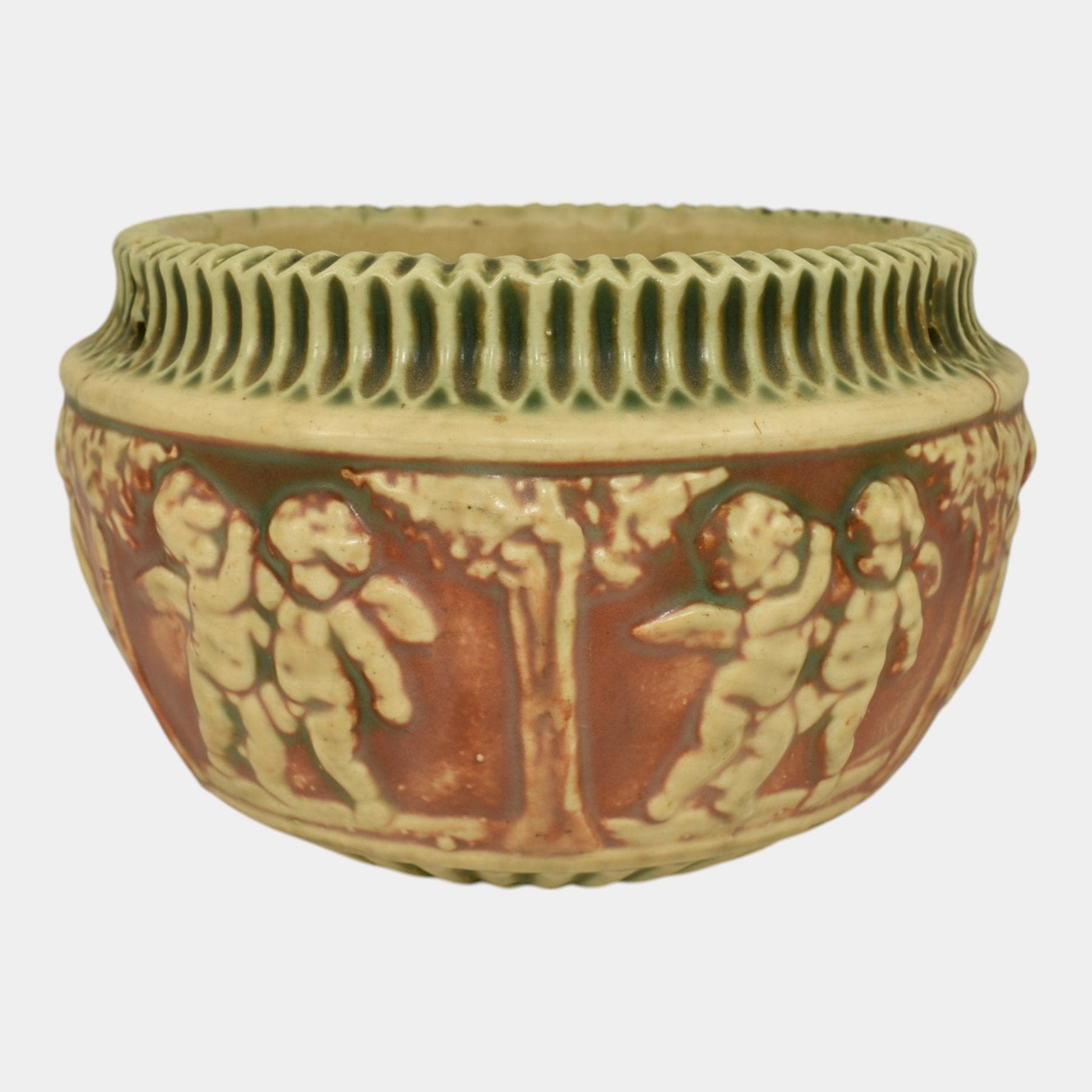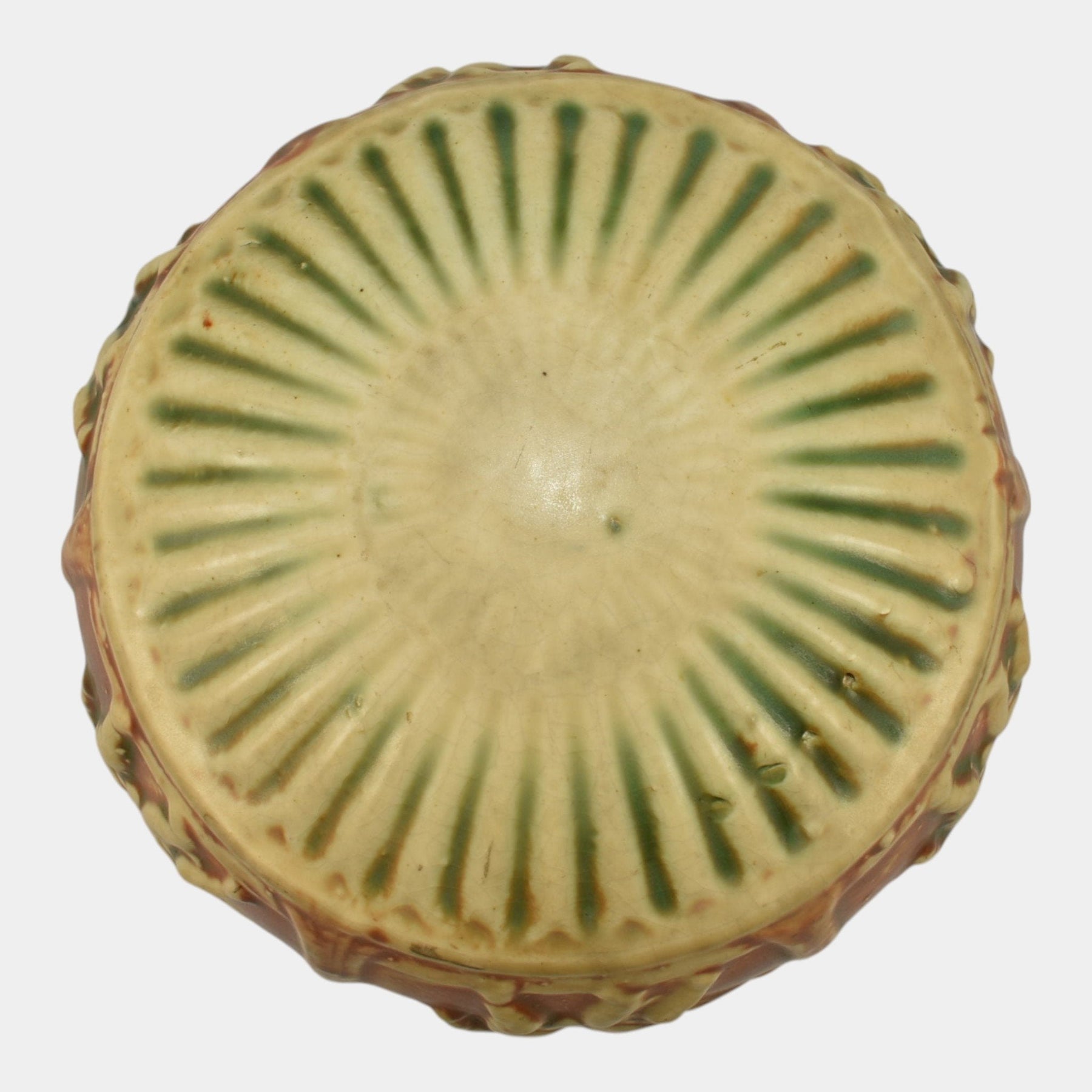• Roseville Pottery was established in Roseville, Ohio, in 1890. Over the years, the company expanded its production to include a wide range of decorative wares, and by the early 20th century, Roseville had shifted its focus toward producing finely crafted art pottery in response to the growing Arts and Crafts movement. Many popular patterns and styles helped establish Roseville as a leading American art pottery maker, known for its high-quality craftsmanship and distinctive, nature-inspired designs.