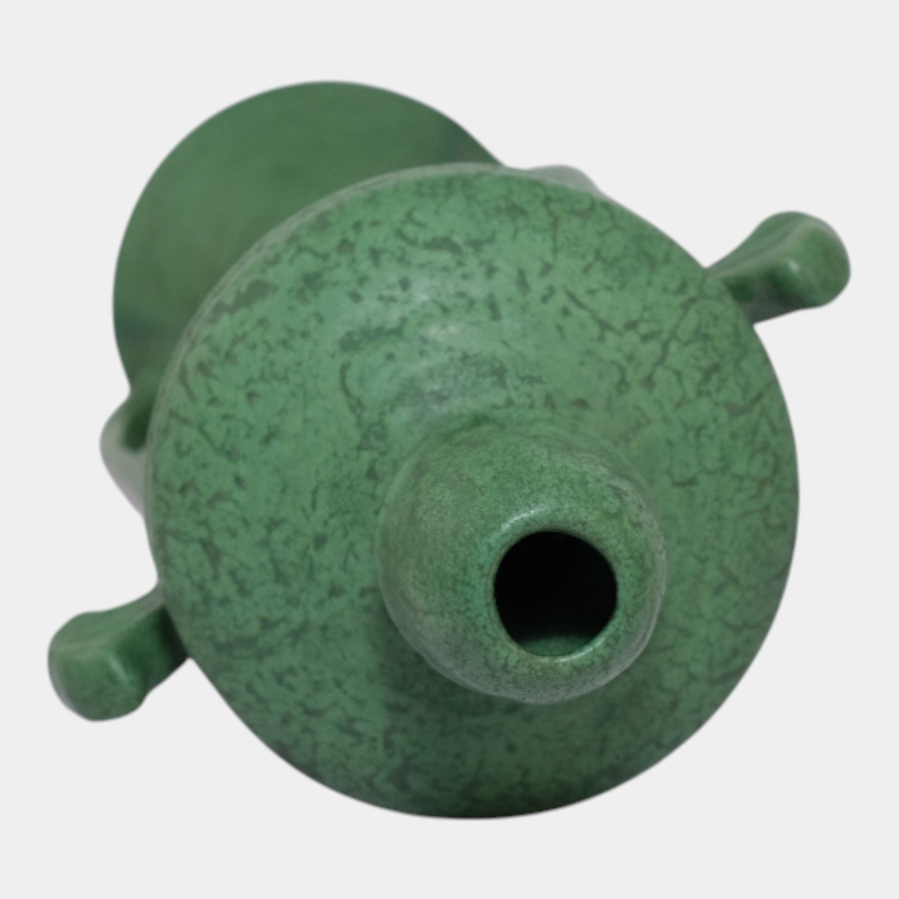 • Rare and exceptional arts and crafts vase covered in a stunning organic mottled and curdled matte green glaze.