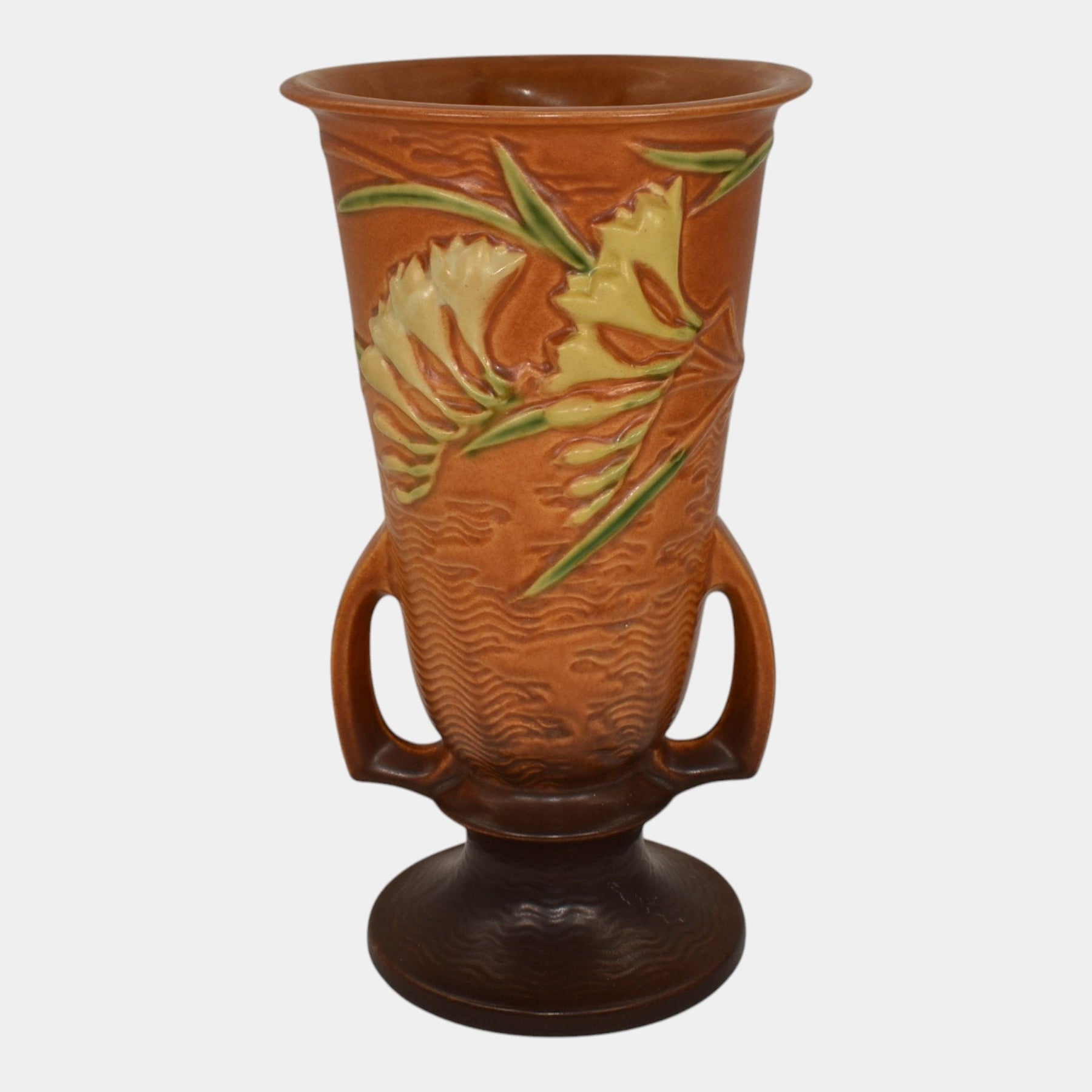 • Roseville Freesia Brown 1945 Mid Century Modern Art Pottery Ceramic Vase 125-10