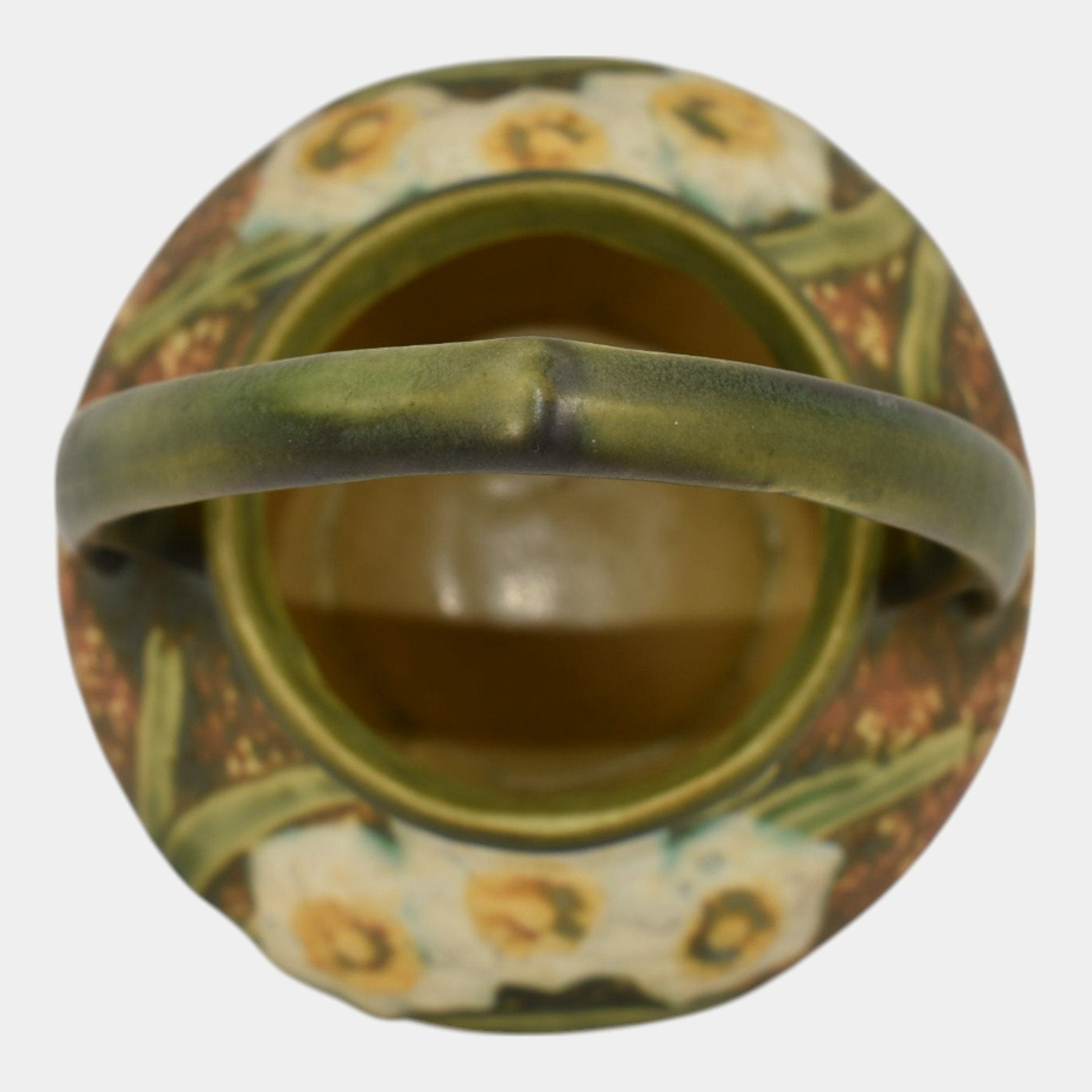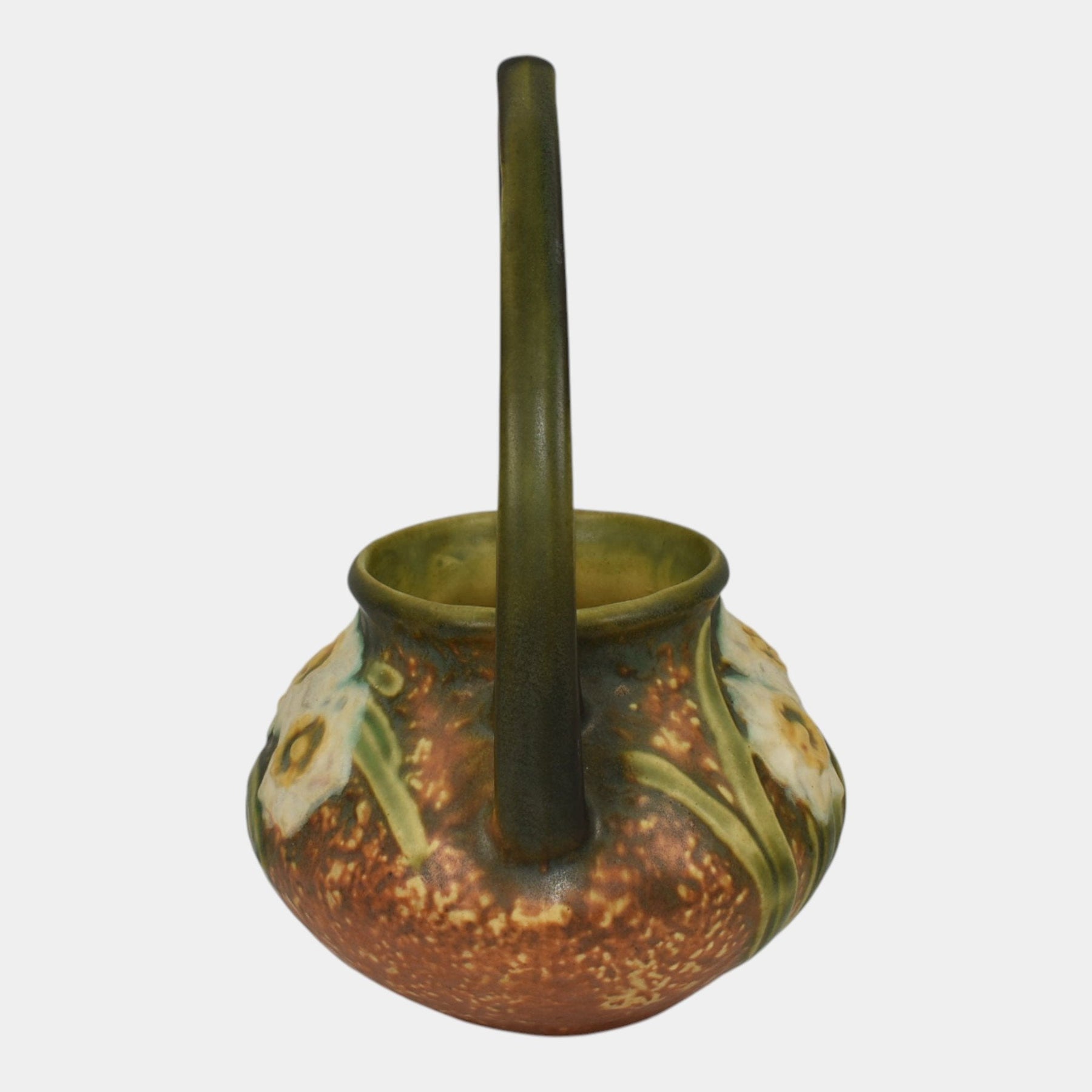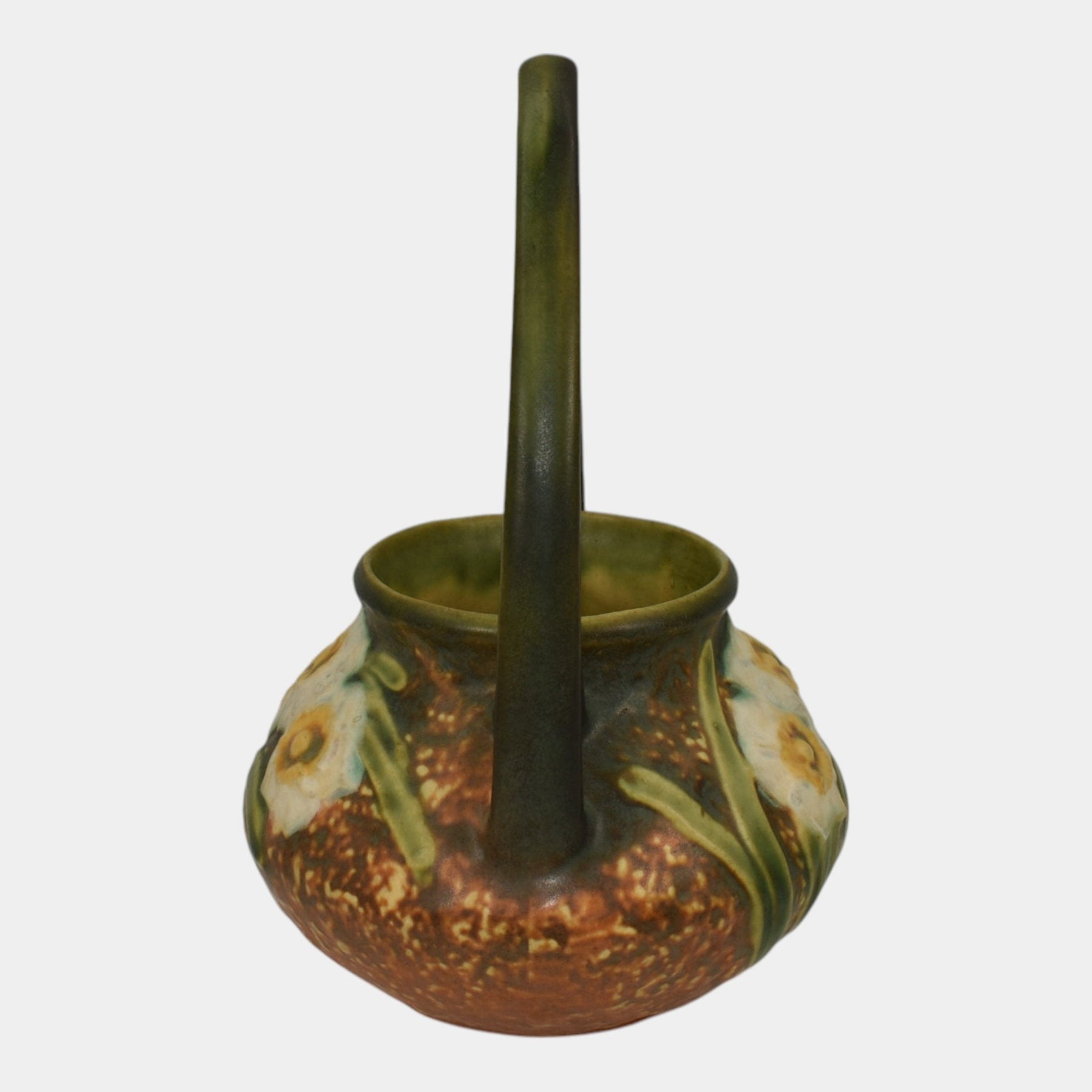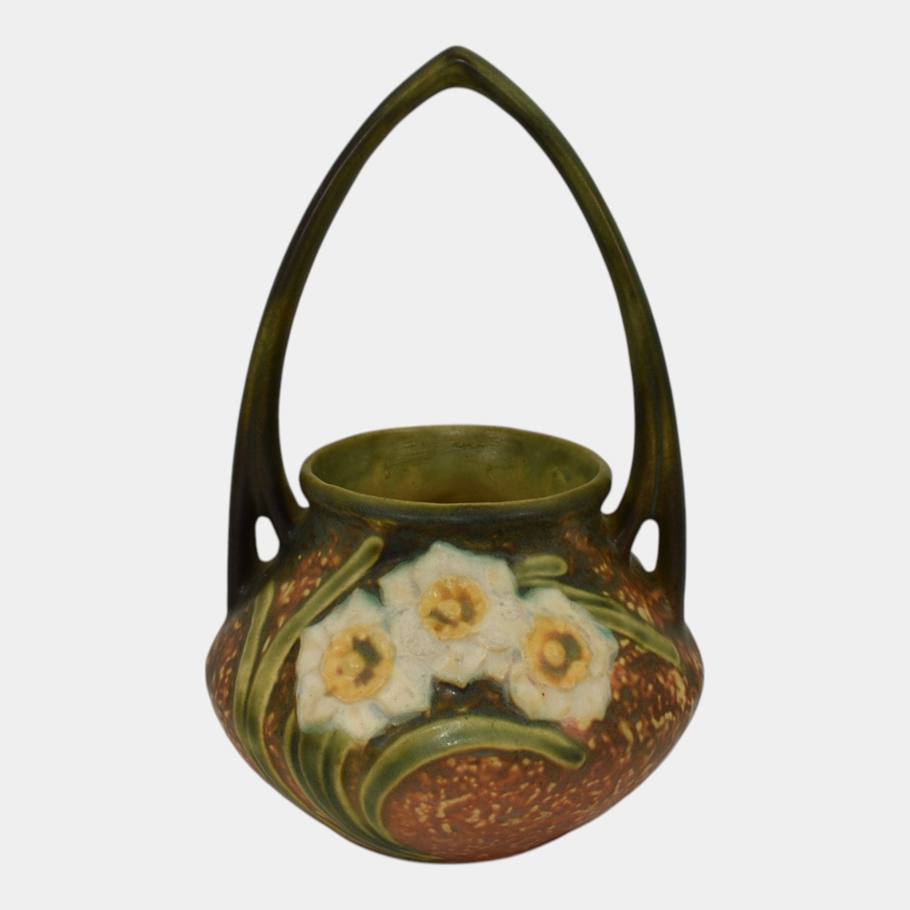 Roseville Jonquil 1931 Vintage Arts And Crafts Pottery Brown Basket 324-8