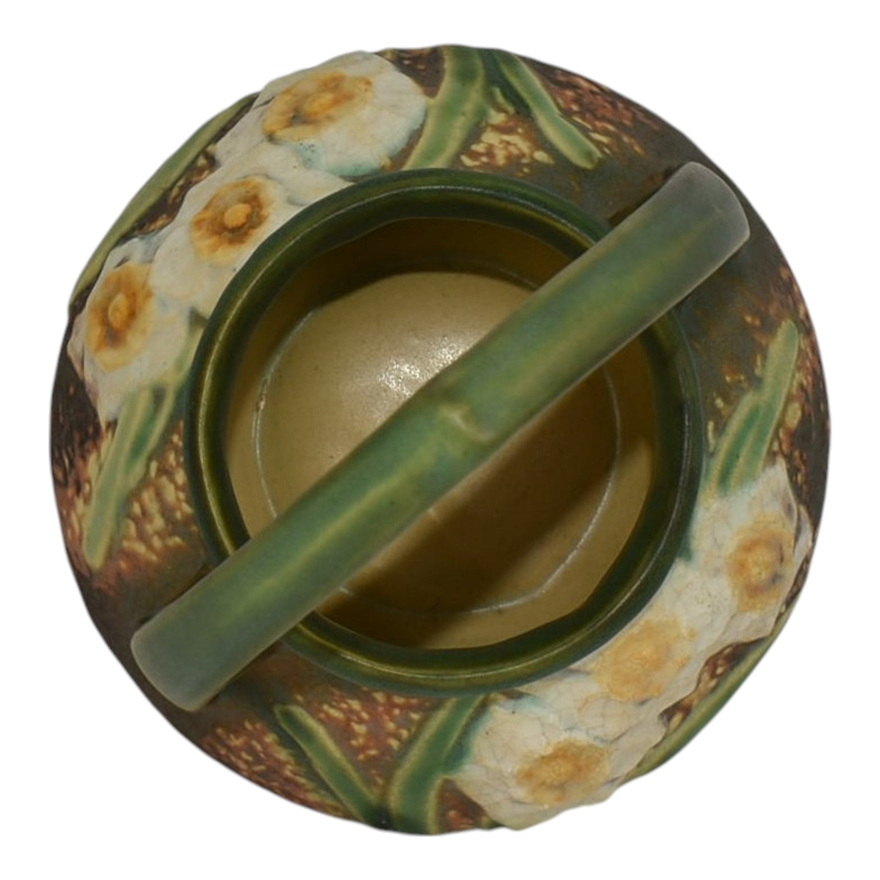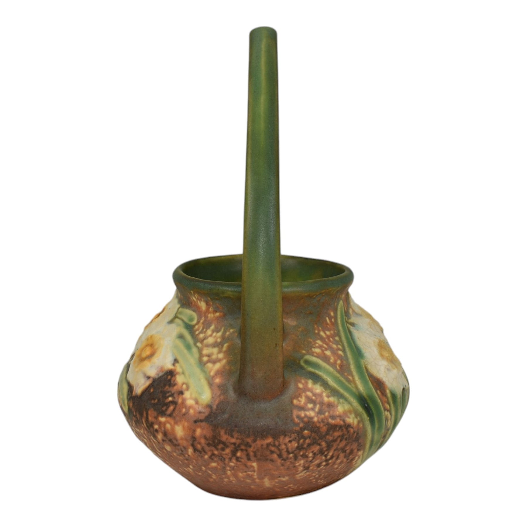 Roseville Jonquil 1931 Vintage Arts And Crafts Pottery Brown Basket 324-8