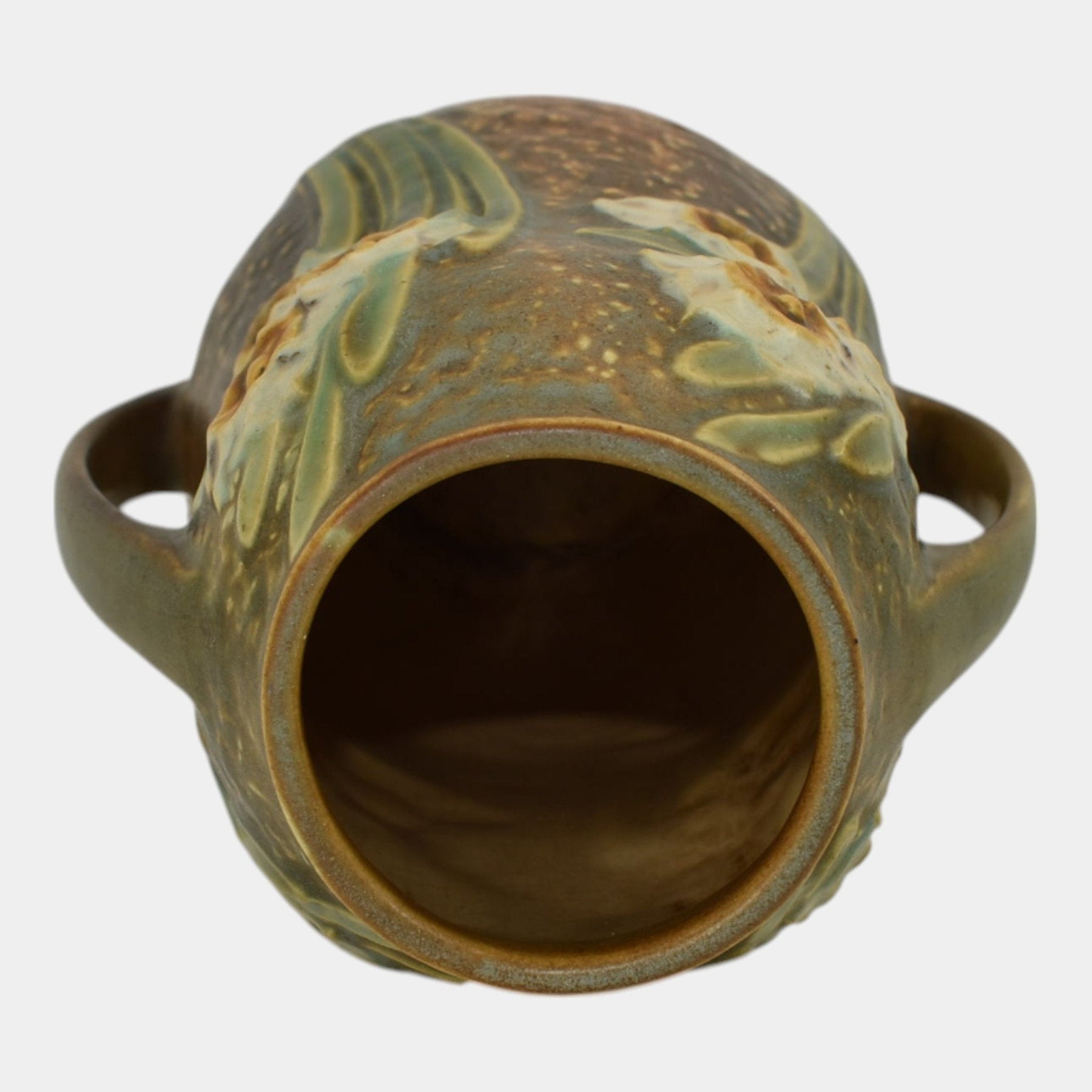 • Roseville Jonquil 1931 Vintage Arts And Crafts Pottery Brown Ceramic Vase 528-8