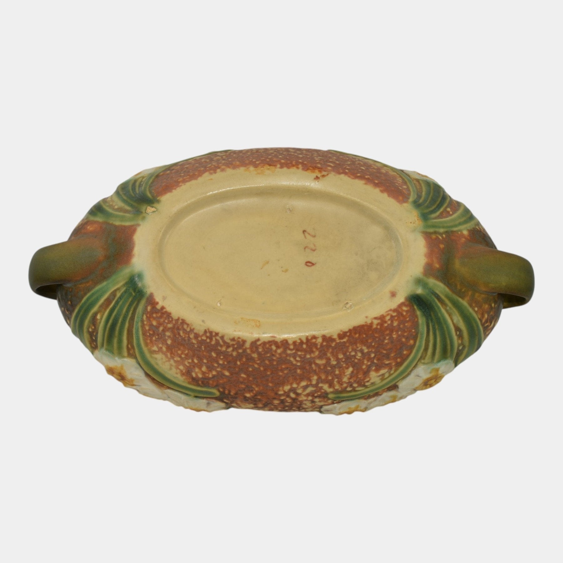 • Roseville Jonquil Brown 1931 Vintage Arts And Crafts Pottery Console Bowl 220-10