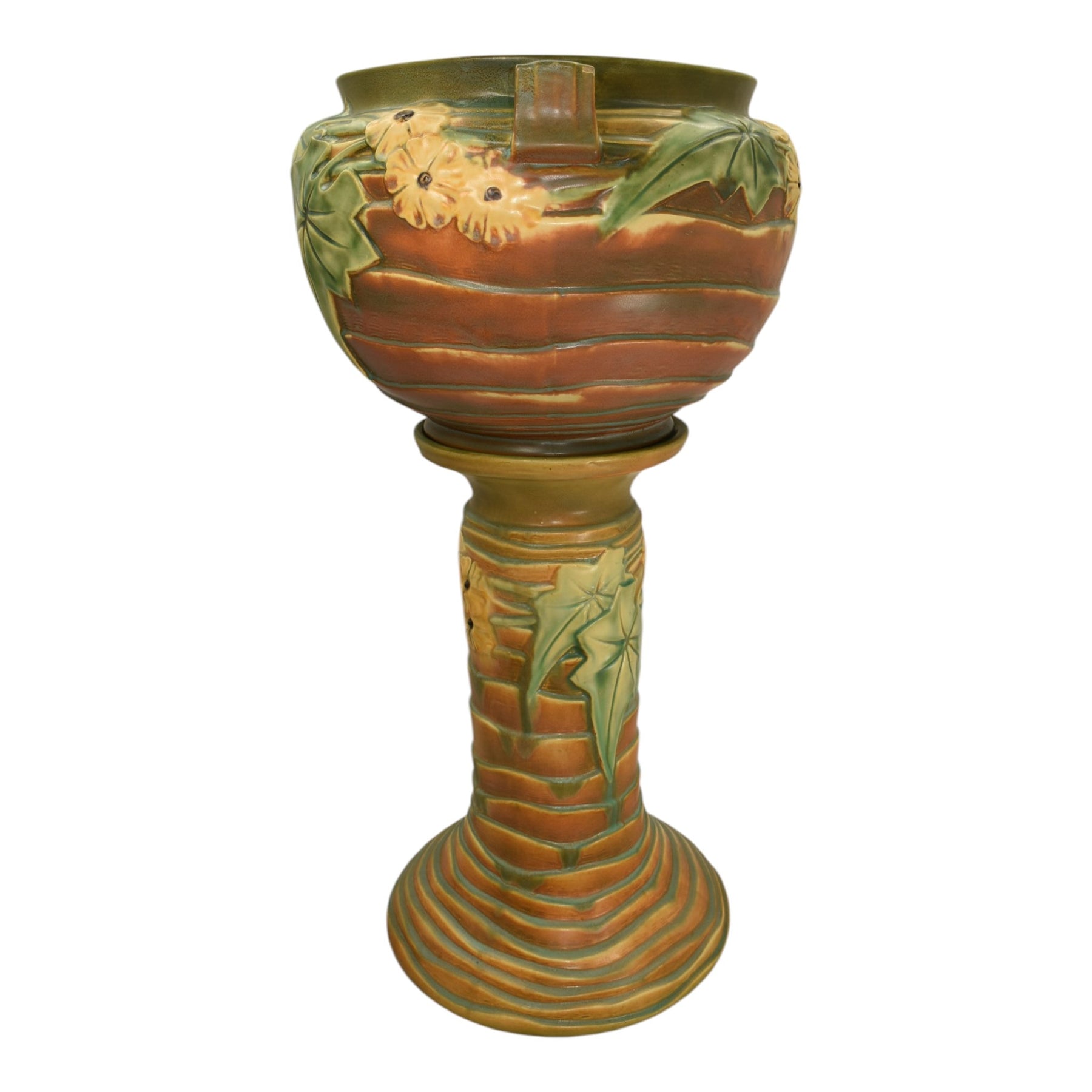 Roseville Luffa Brown 1934 Vintage Art Pottery Jardiniere Pedestal 631-10
