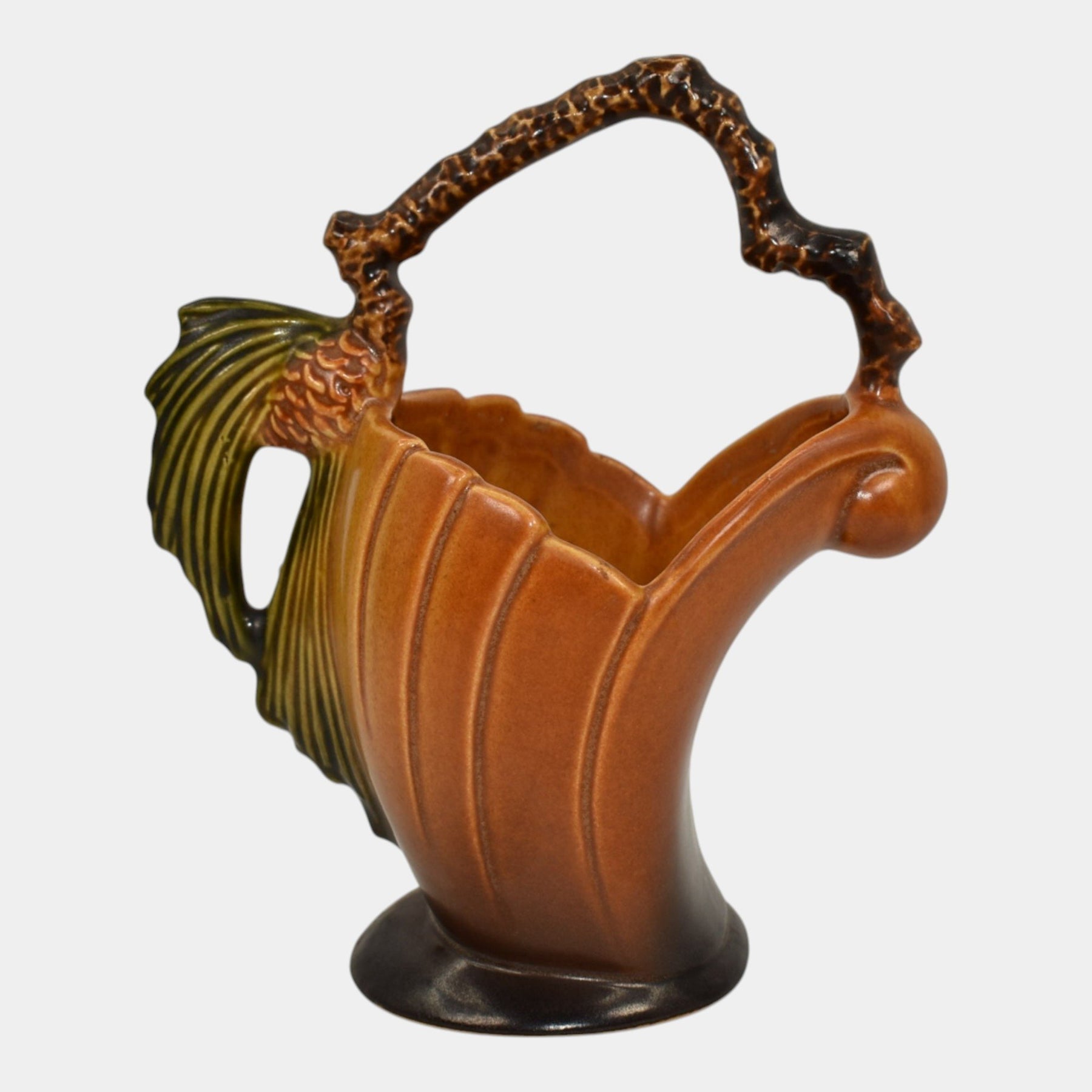Roseville Pine Cone Brown 1953 Vintage Mid Century Modern Pottery Basket 408-6