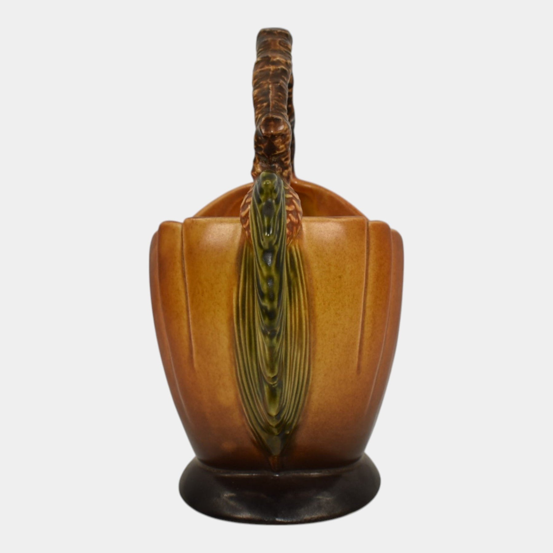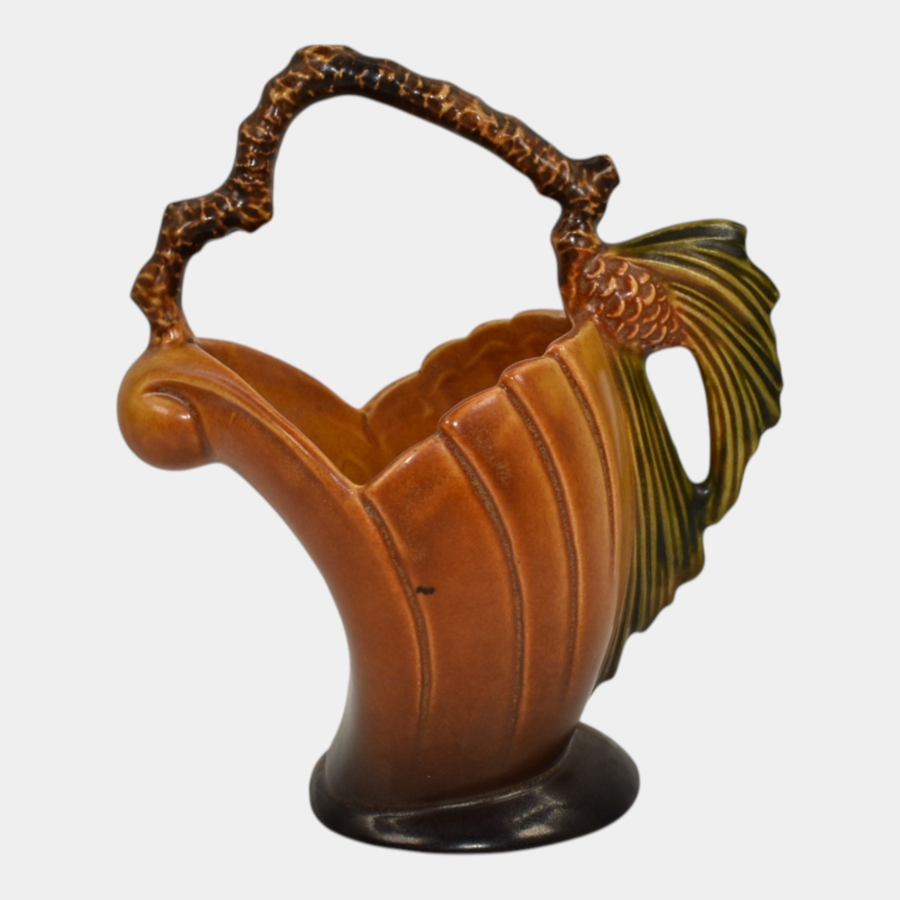 • Roseville Pine Cone Brown 1953 Vintage Mid Century Modern Pottery Basket 408-6