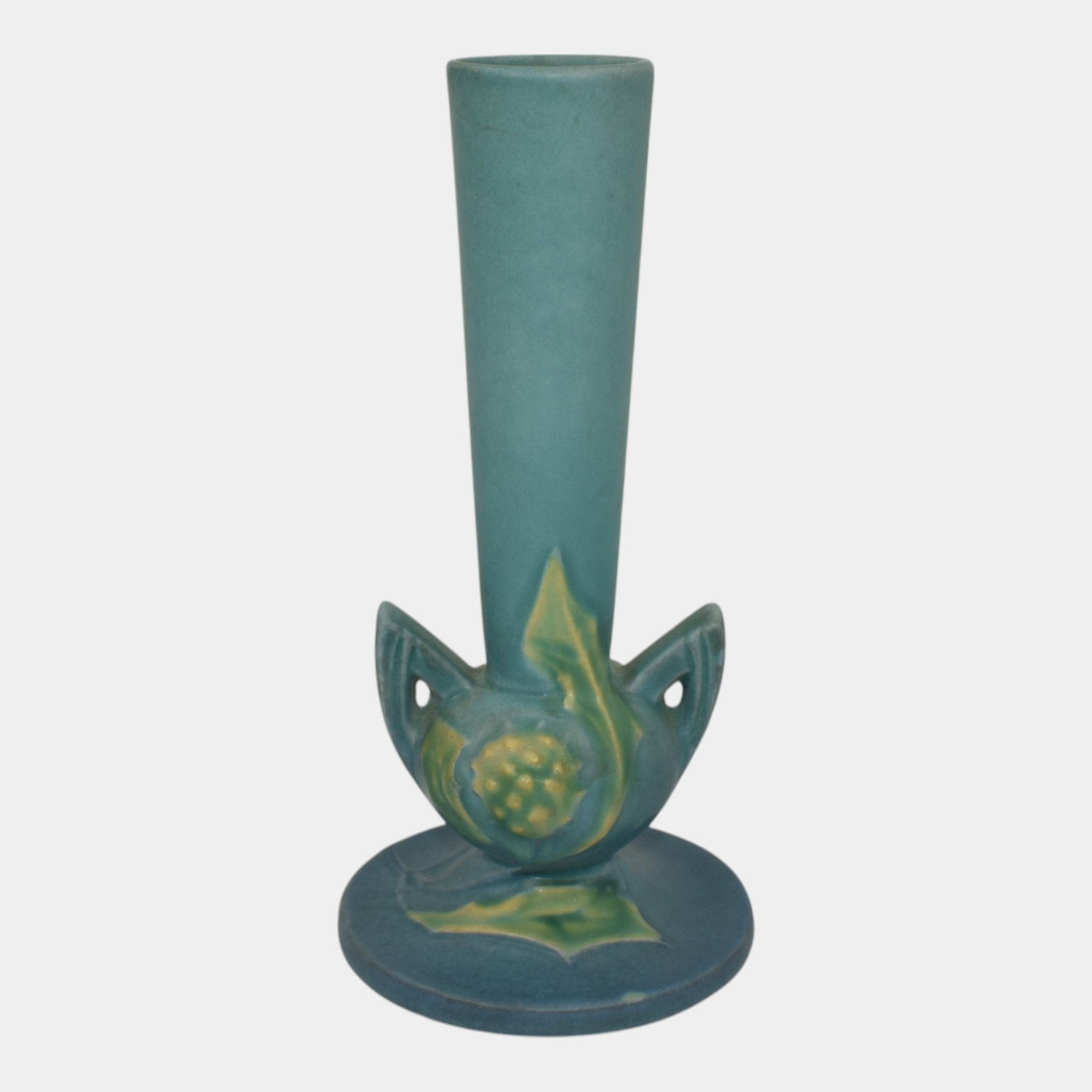 • Roseville Thornapple Blue 1937 Vintage Art Deco Pottery Ceramic Bud Vase 813-7