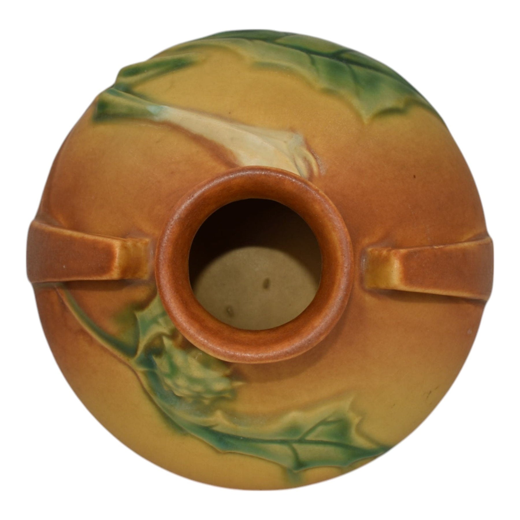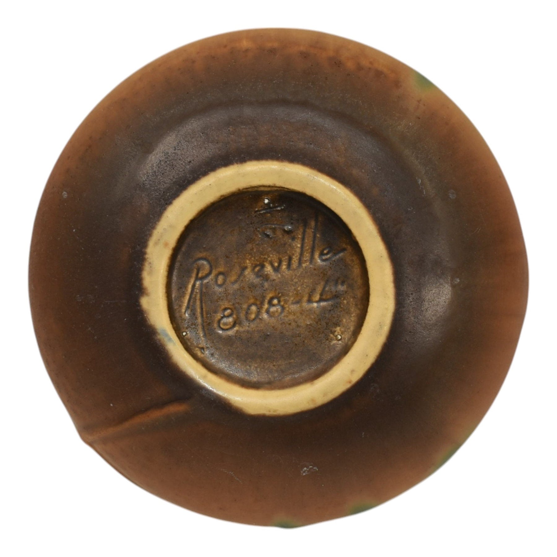 • Roseville Thornapple Brown 1937 Art Deco Pottery Ceramic Squat Vase 808-4