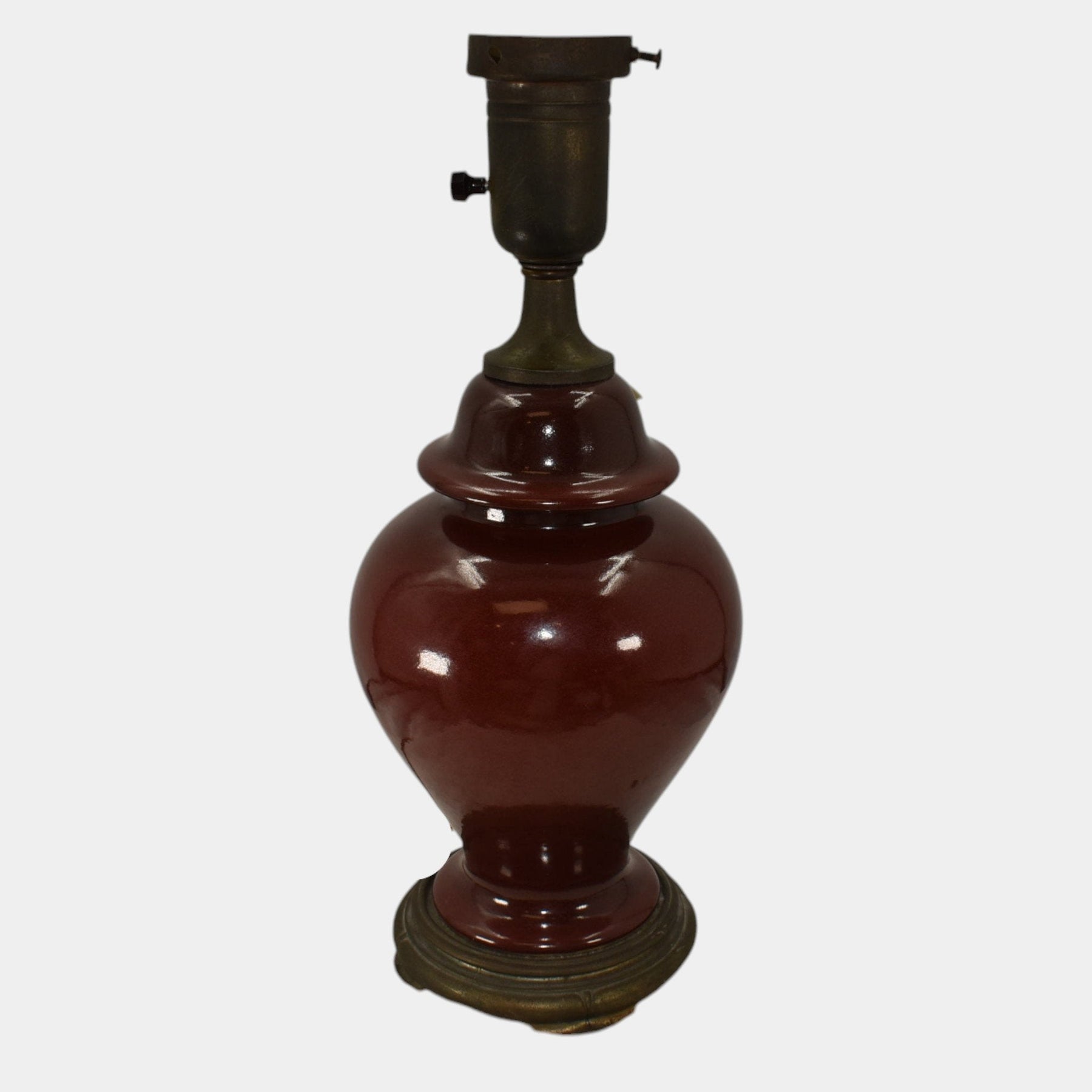 • Attractive Roseville Pottery factory lamp in a clean and striking dark blood red glaze.
