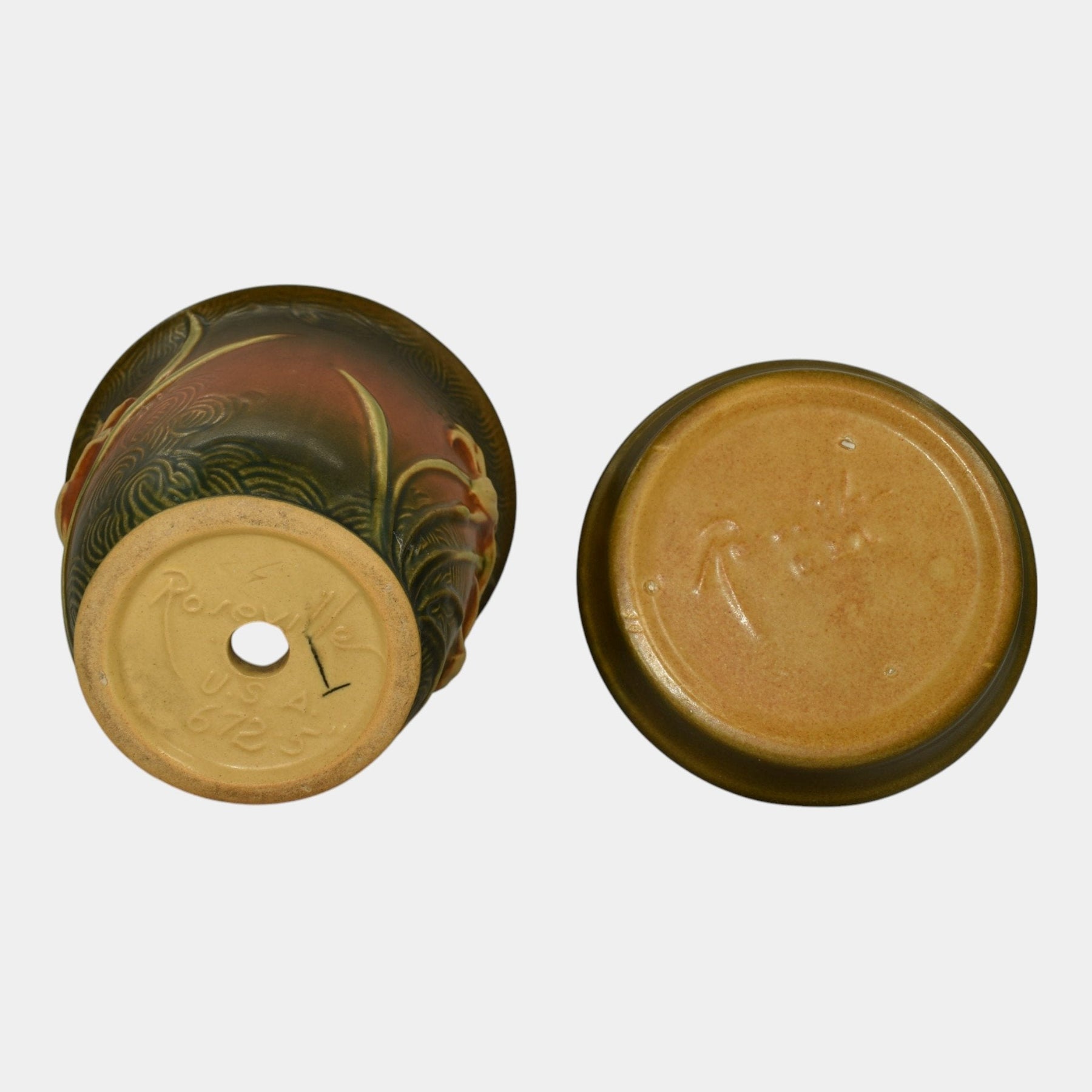 Roseville Zephyr Lily Brown 1946 Vintage Art Pottery Flower Pot And Saucer 672-5