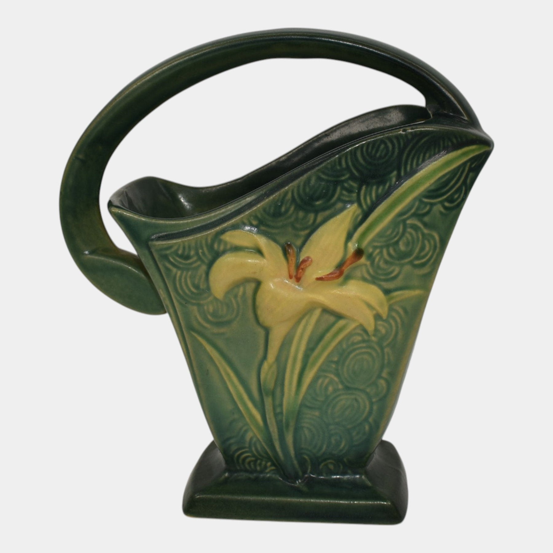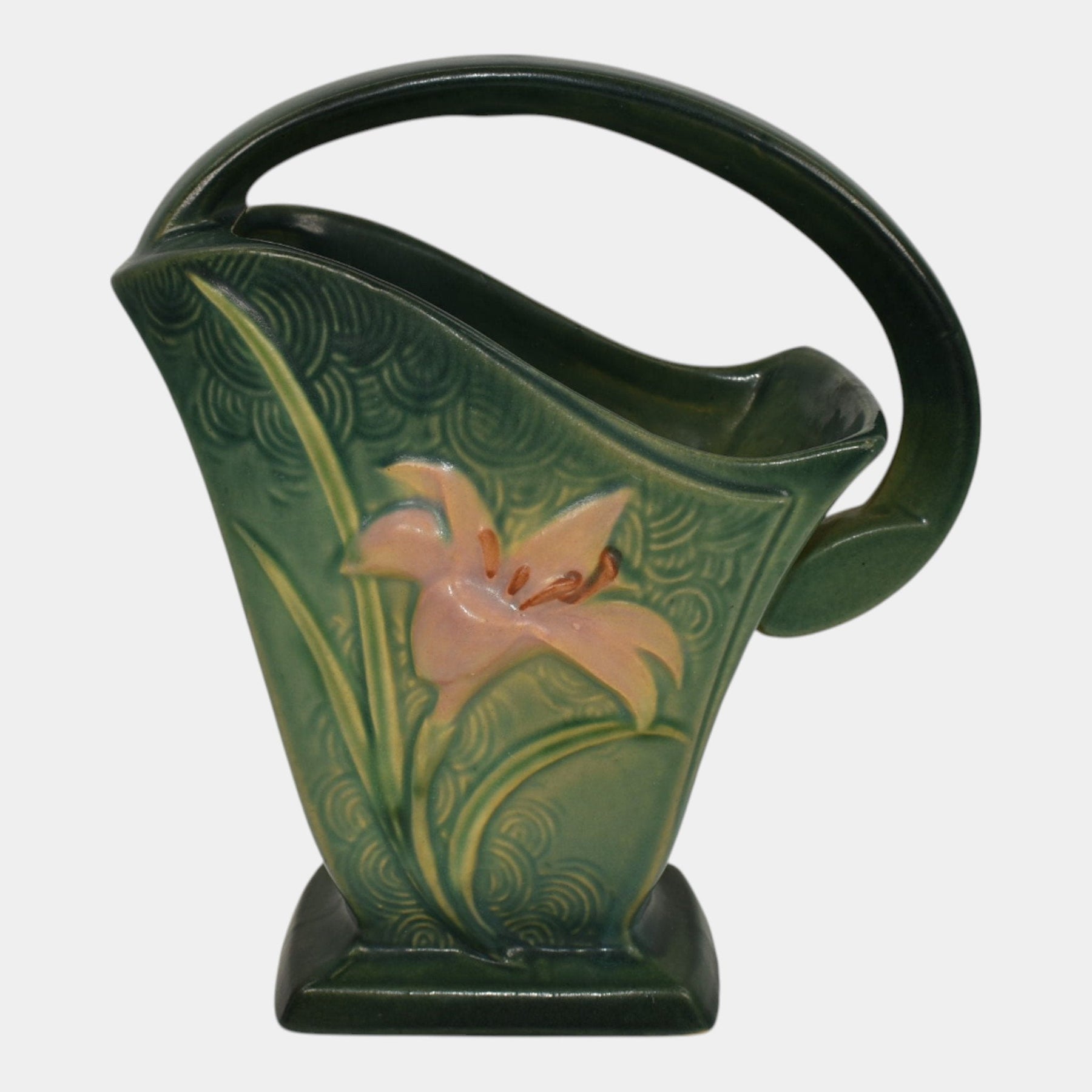 Roseville Zephyr Lily Green 1946 Mid Century Modern Art Pottery Basket 394-8