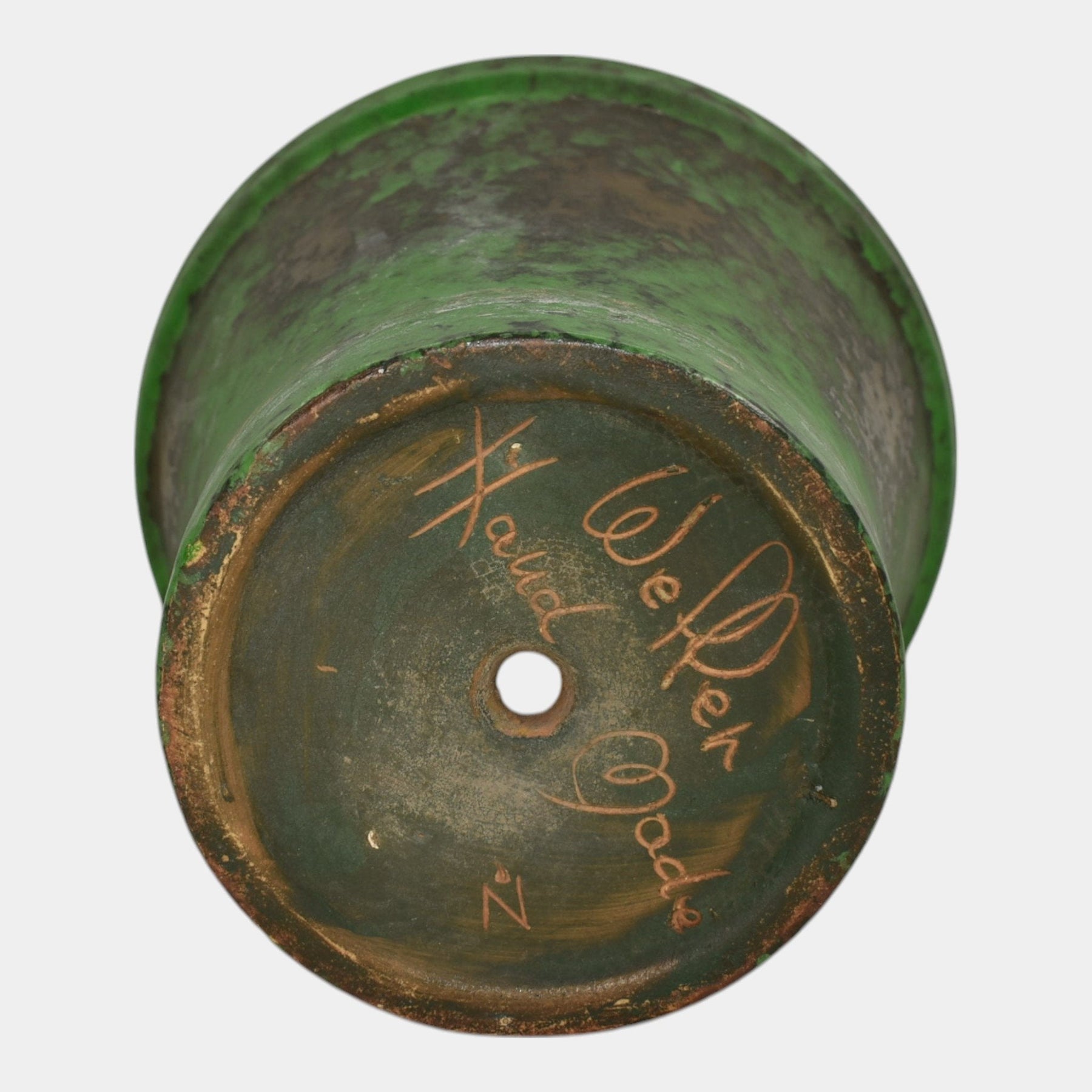 • Weller Coppertone 1920s Vintage Arts and Crafts Pottery Green Flower Pot Planter